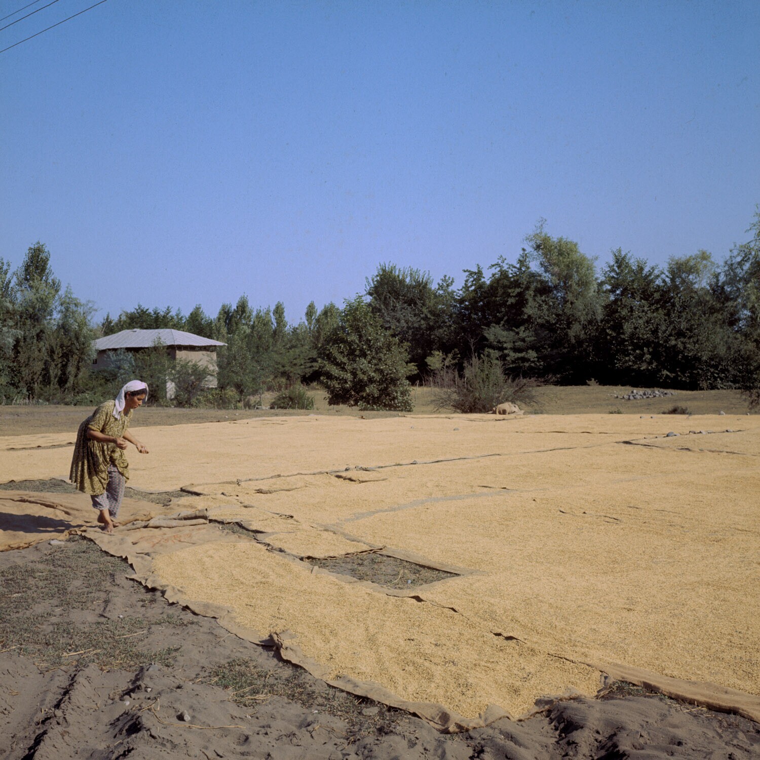 Drogen van rijst bij een rijstpellerij nabij de Kasp...