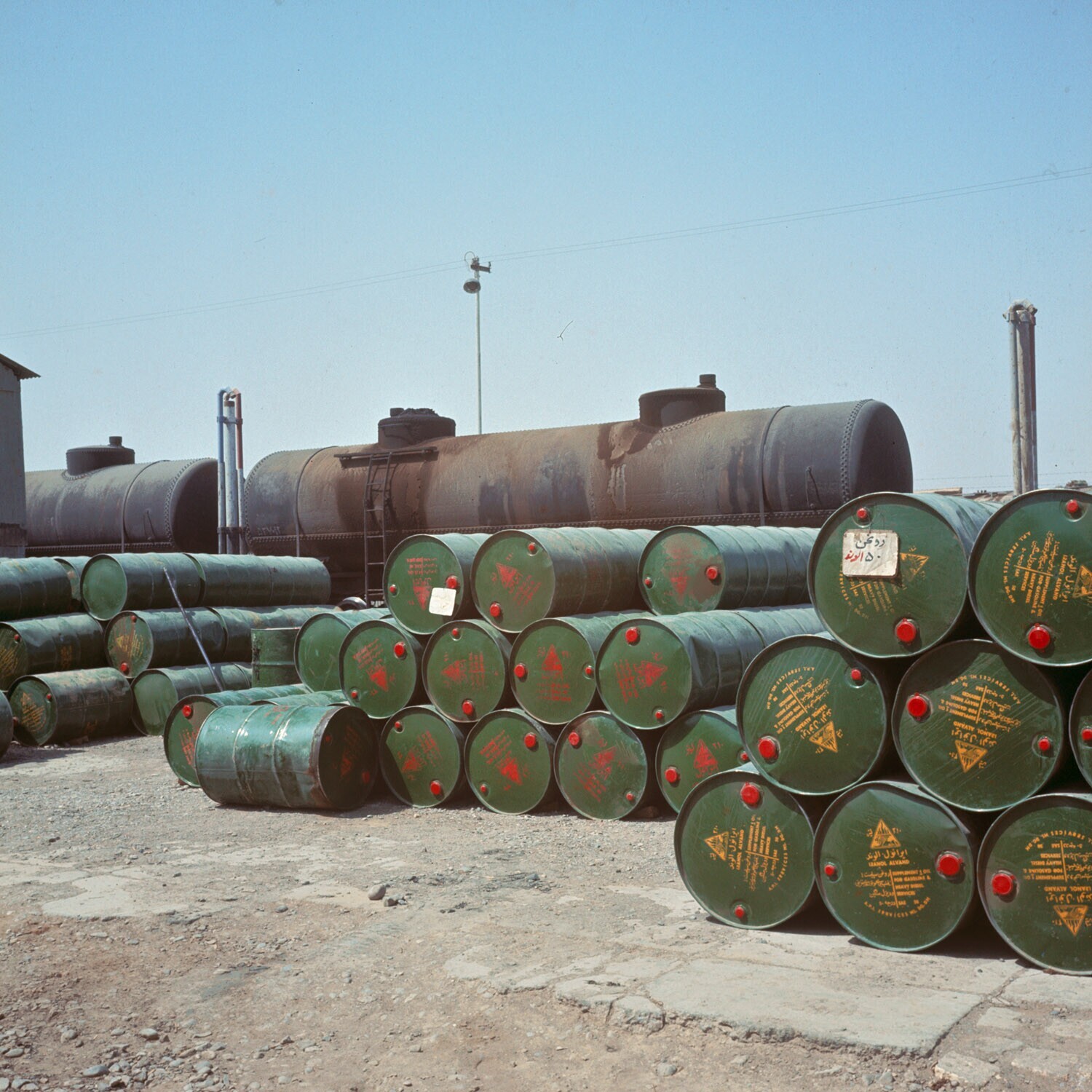 Oliewinning en opslagplaatsen bij Qom in Iran