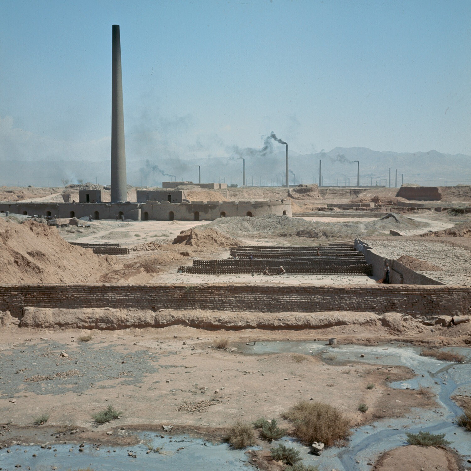 De kalkmolen voor huizenbouw ten noorden van Isfahan...