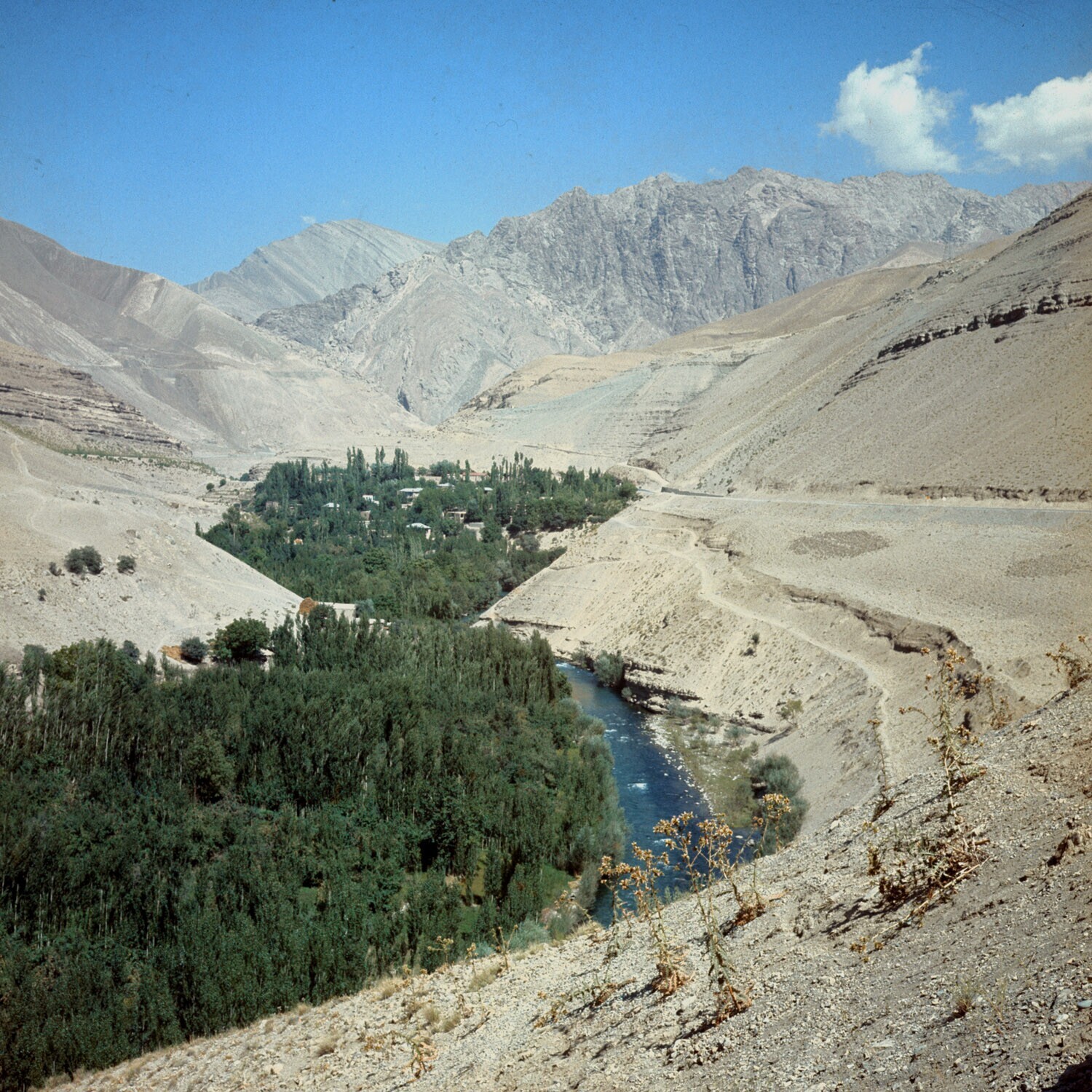 Schachtbouw van koperoven bij weg door Elburzgebergt...