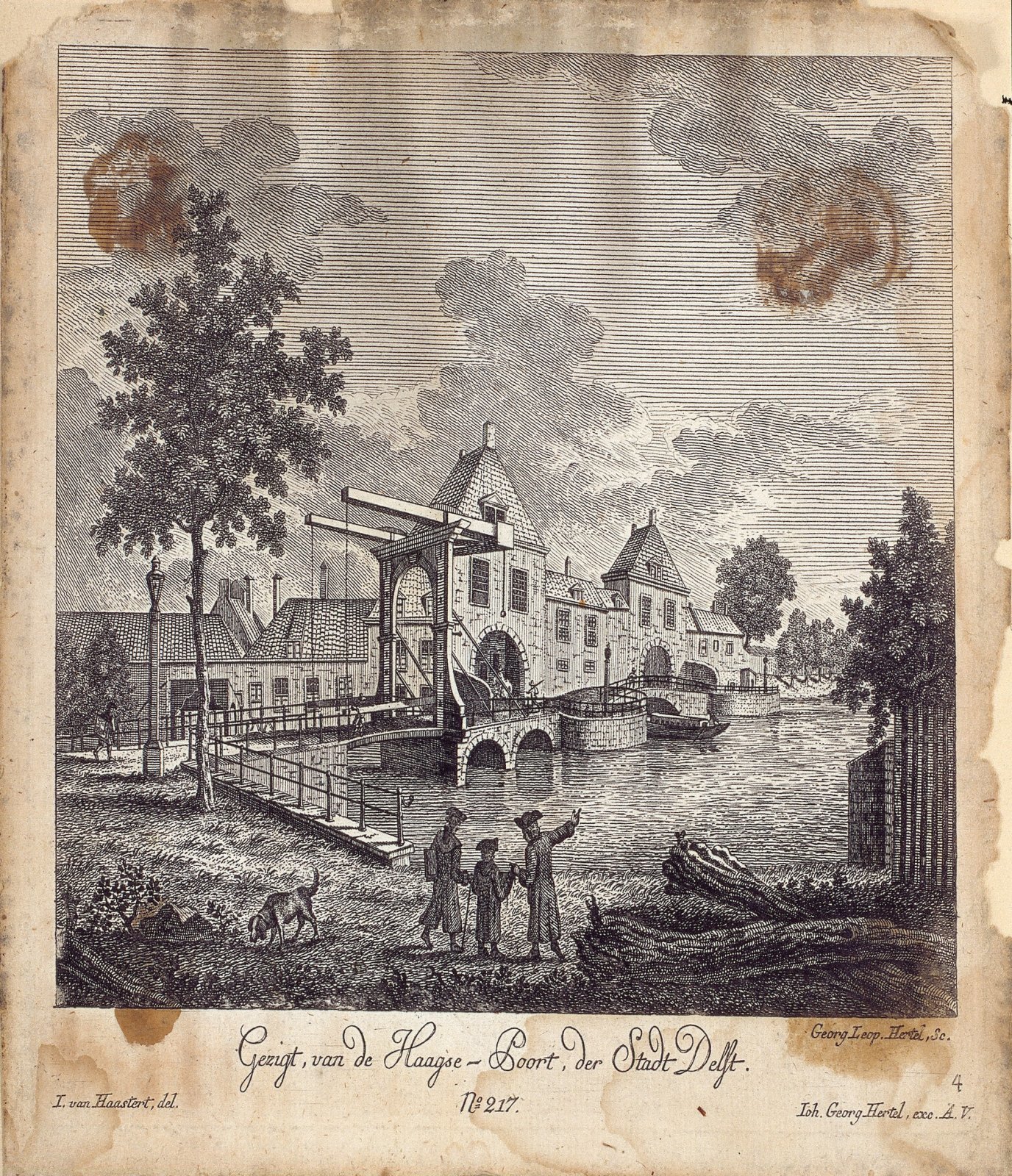 Gezigt, van de Haagse-Poort, der Stadt Delft