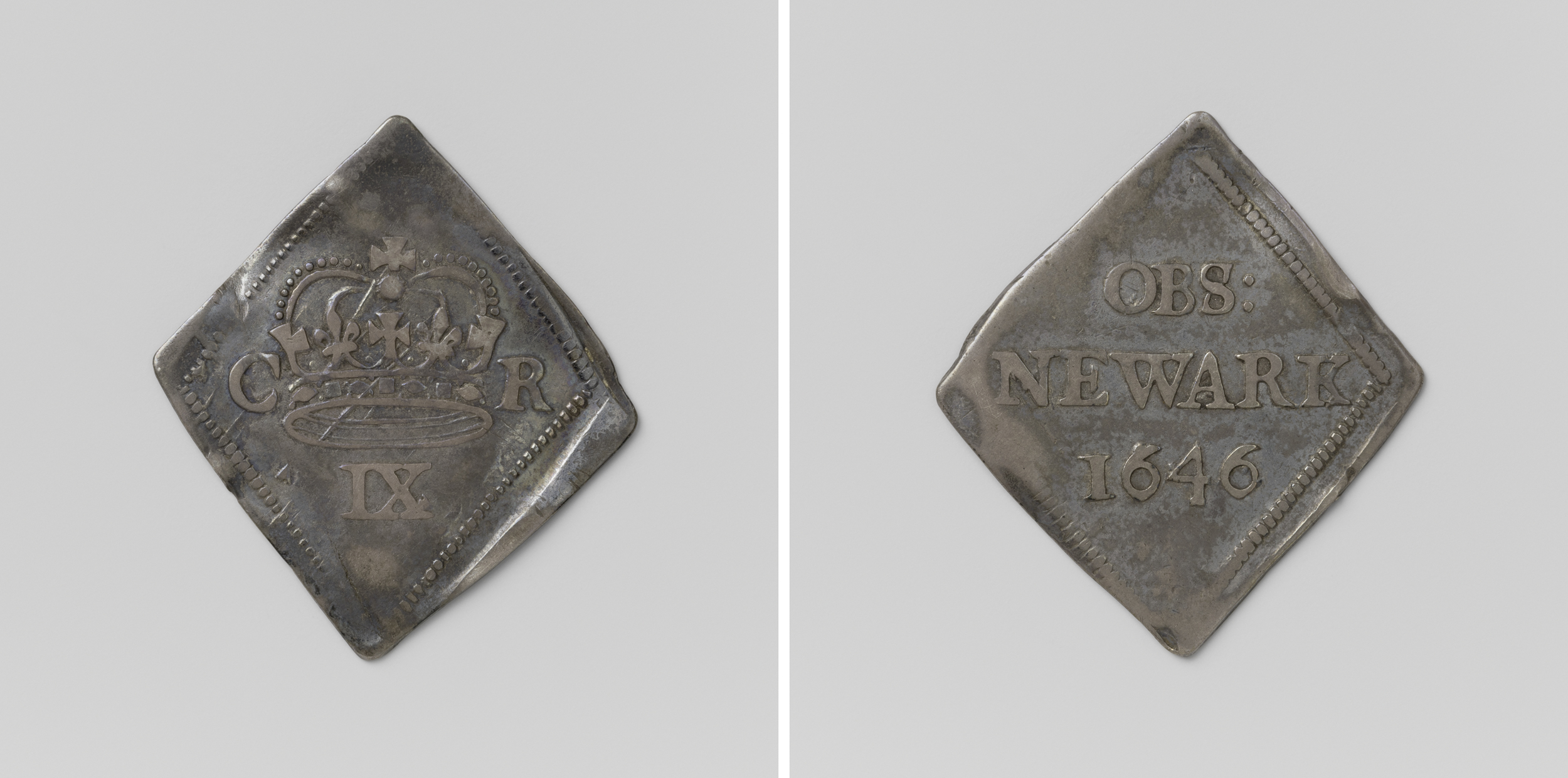 negen pence, noodmunt uit Newark-on-Trent, geslagen ...