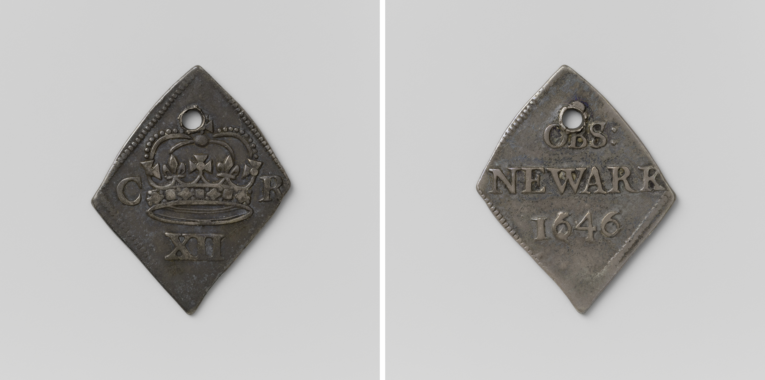 Shilling; twaalf pence, noodmunt uit Newark-on-Trent...