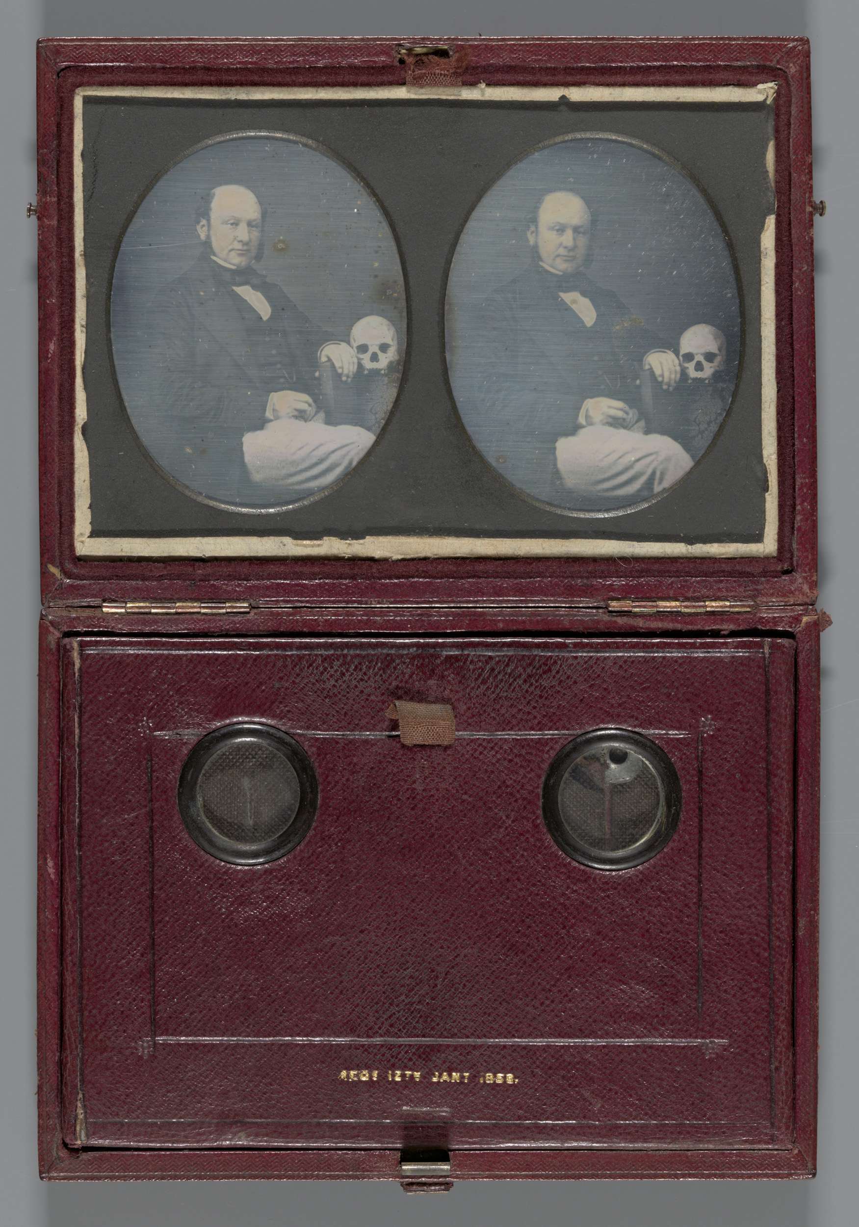 Portret van een onbekende man met schedel