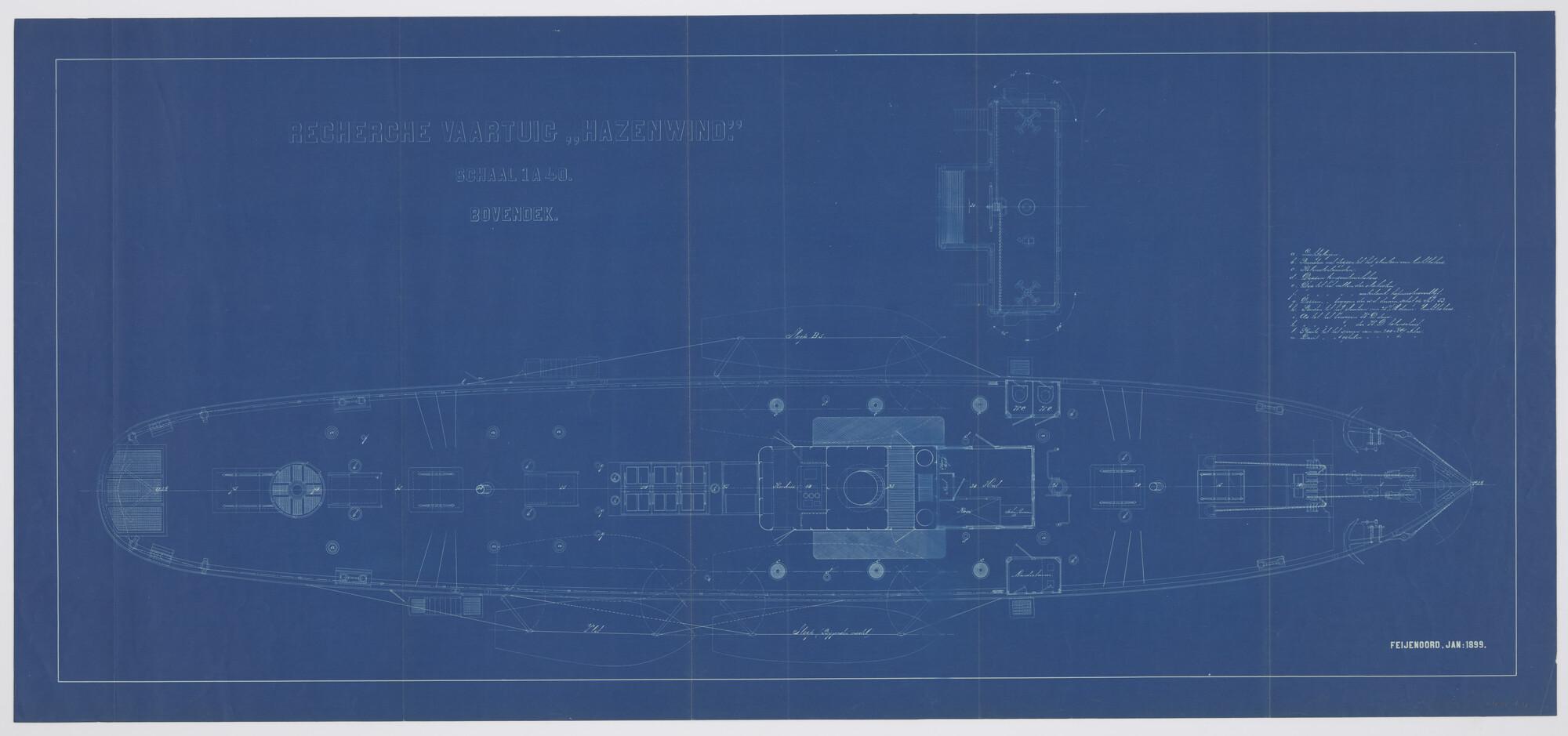 Indelingstekening van het bovendek van het stoomschi...