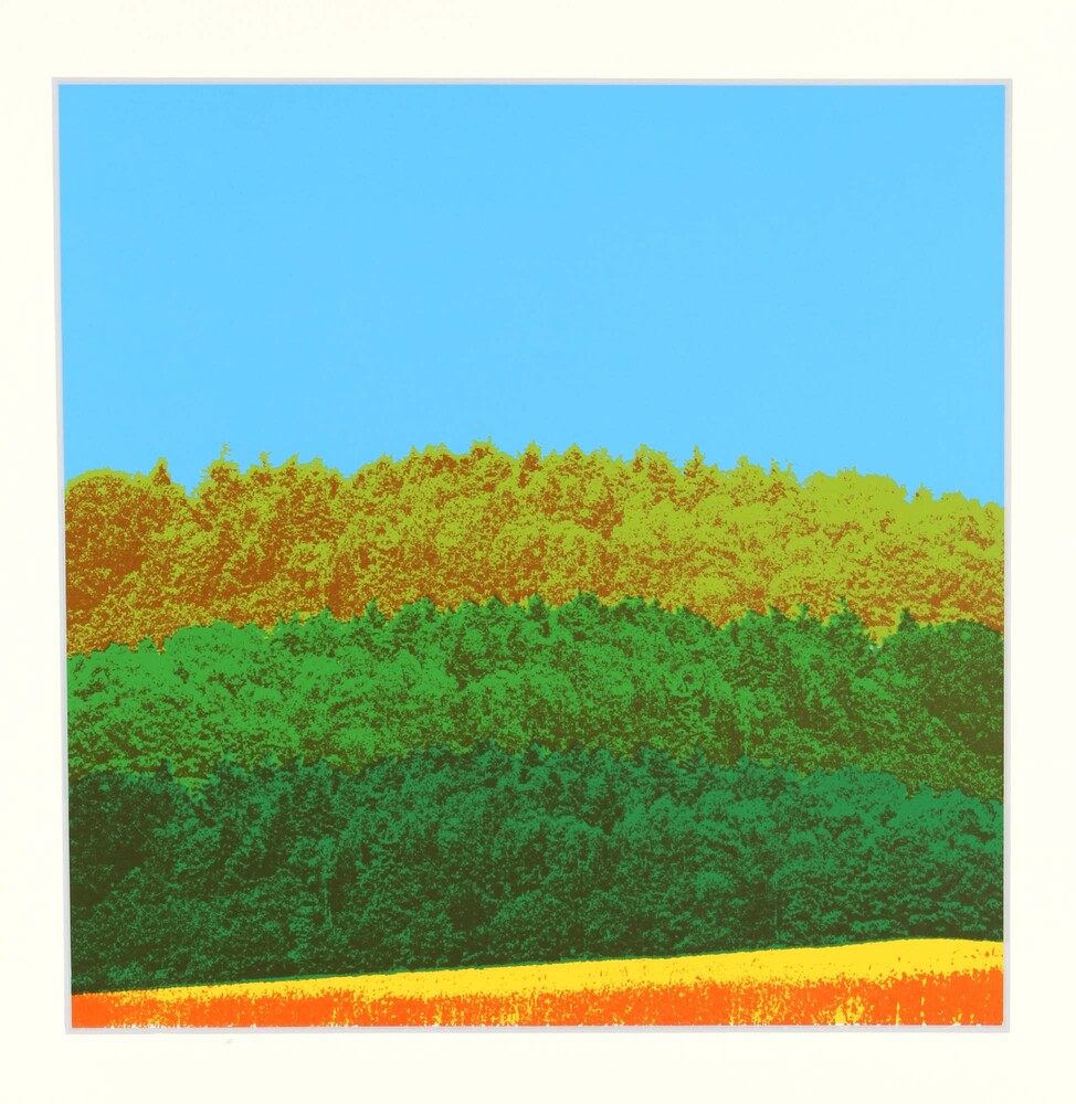 Lucht met landschap groen, rood en geel, ZOMER 1977