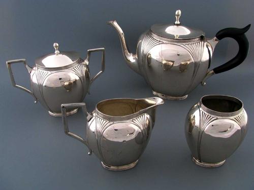 Vierdelig theeservies van zilver