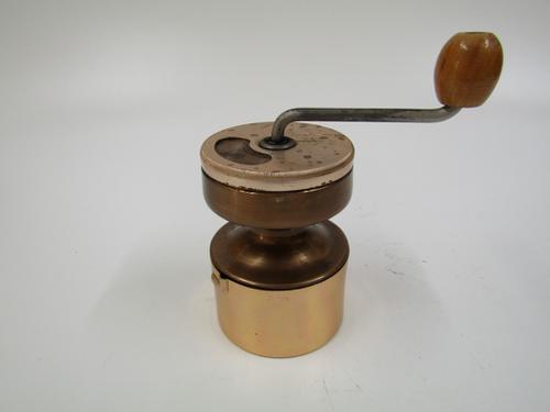 Messing schootkoffiemolen met ajour gezaagde zwengel