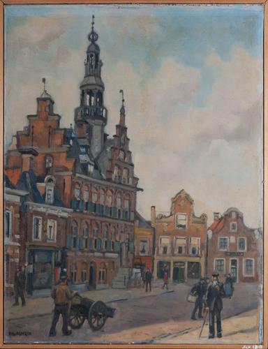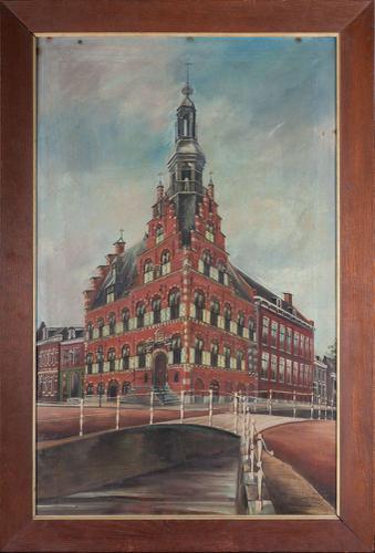 Schilderij van het stadhuis van Franeker door P.H. v...