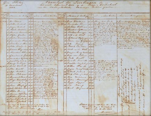 Handgeschreven naamlijst van de Dagkostschool uit 18...