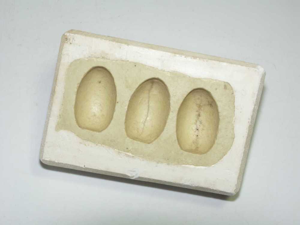 Marsepeinvorm van gips en zwavel voor 3 eieren