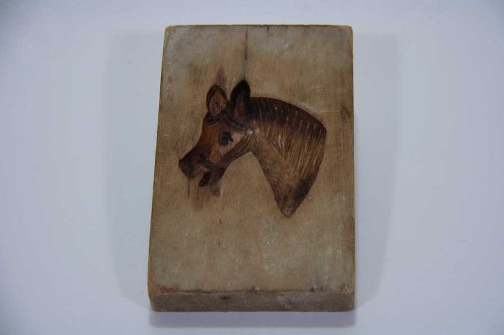 Marsepeinplank van hout in de vorm van een paardenhoofd