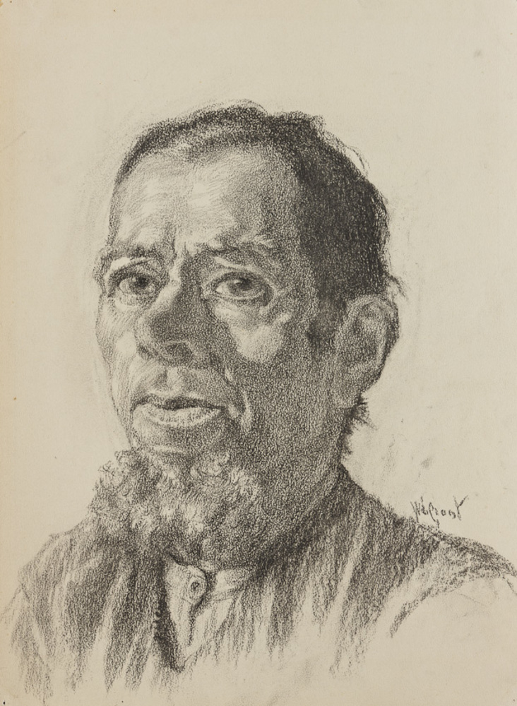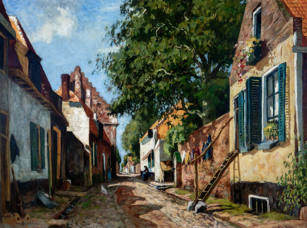 Boerderij met boerin en kruiwagen. 'Studie Nunspeet'.
