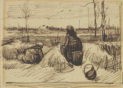 Schets van Twee vrouwen werkend op het veld