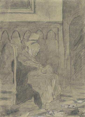 Slapende oude vrouw (naar Rops)