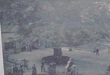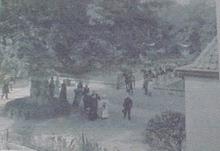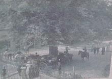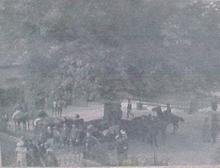Op karton geplakte foto met de aankomst van Wilhelmi...
