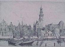 Reproduktie Mooi Veere 1976 met linksonder Piet van ...
