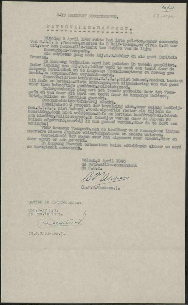 Patrouille-rapport, Woloan, 9 april 1946