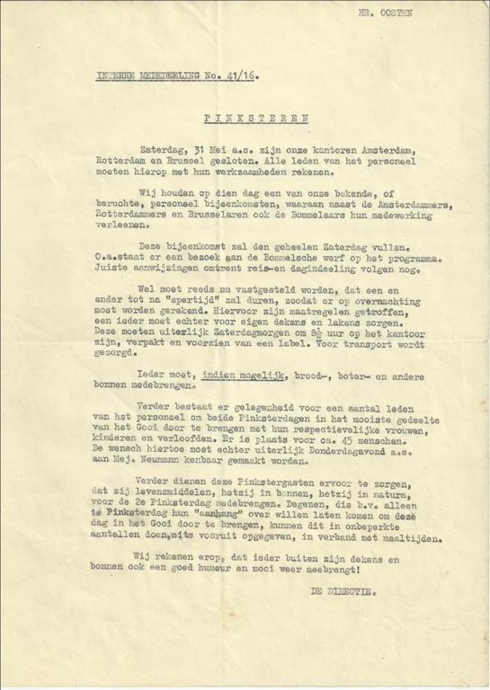 Interne mededeling van de N.V. Warmte aan dhr Oosten...