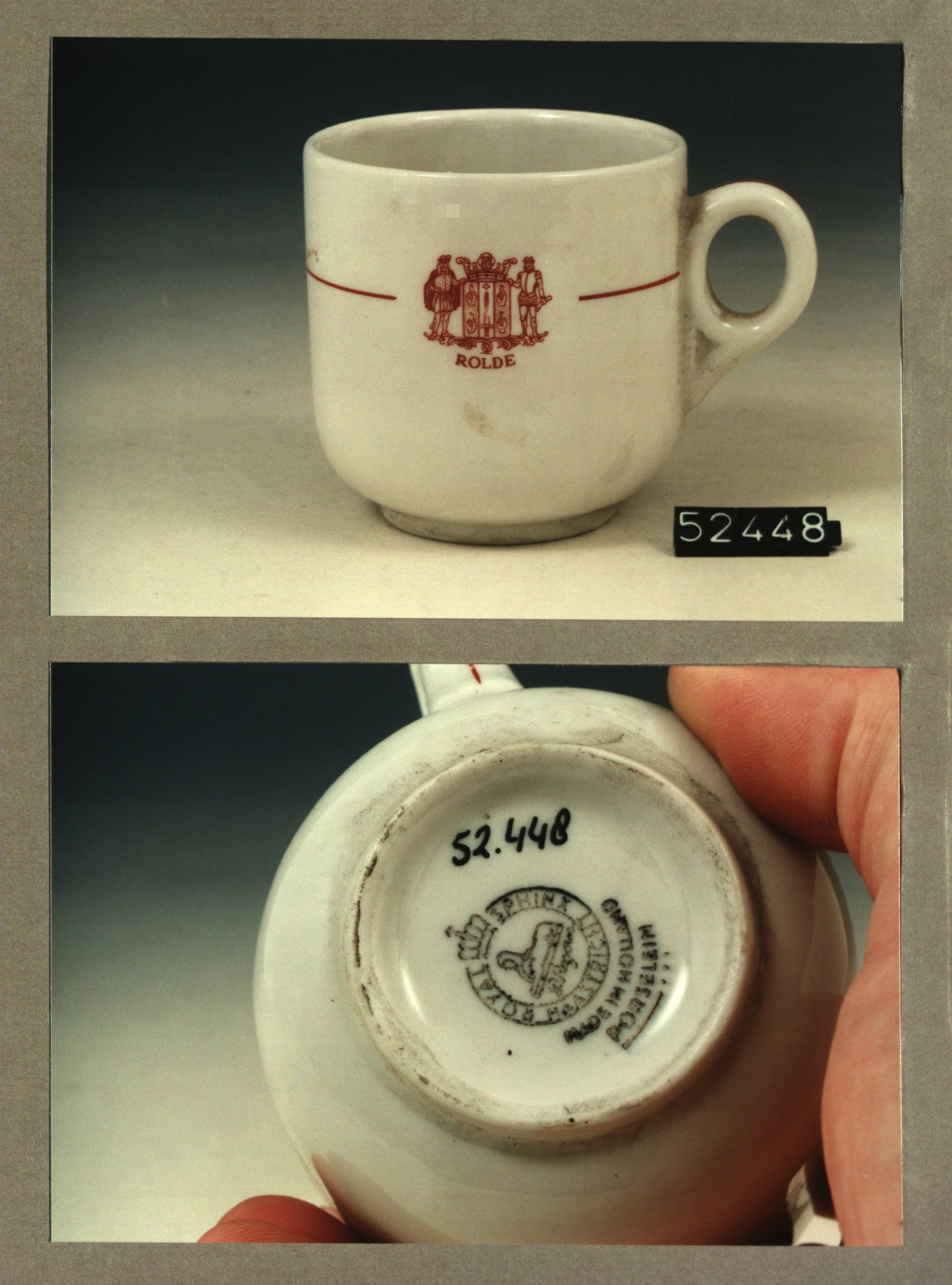 Kop met opschrift, model F2 met decor Gemeente Rolde