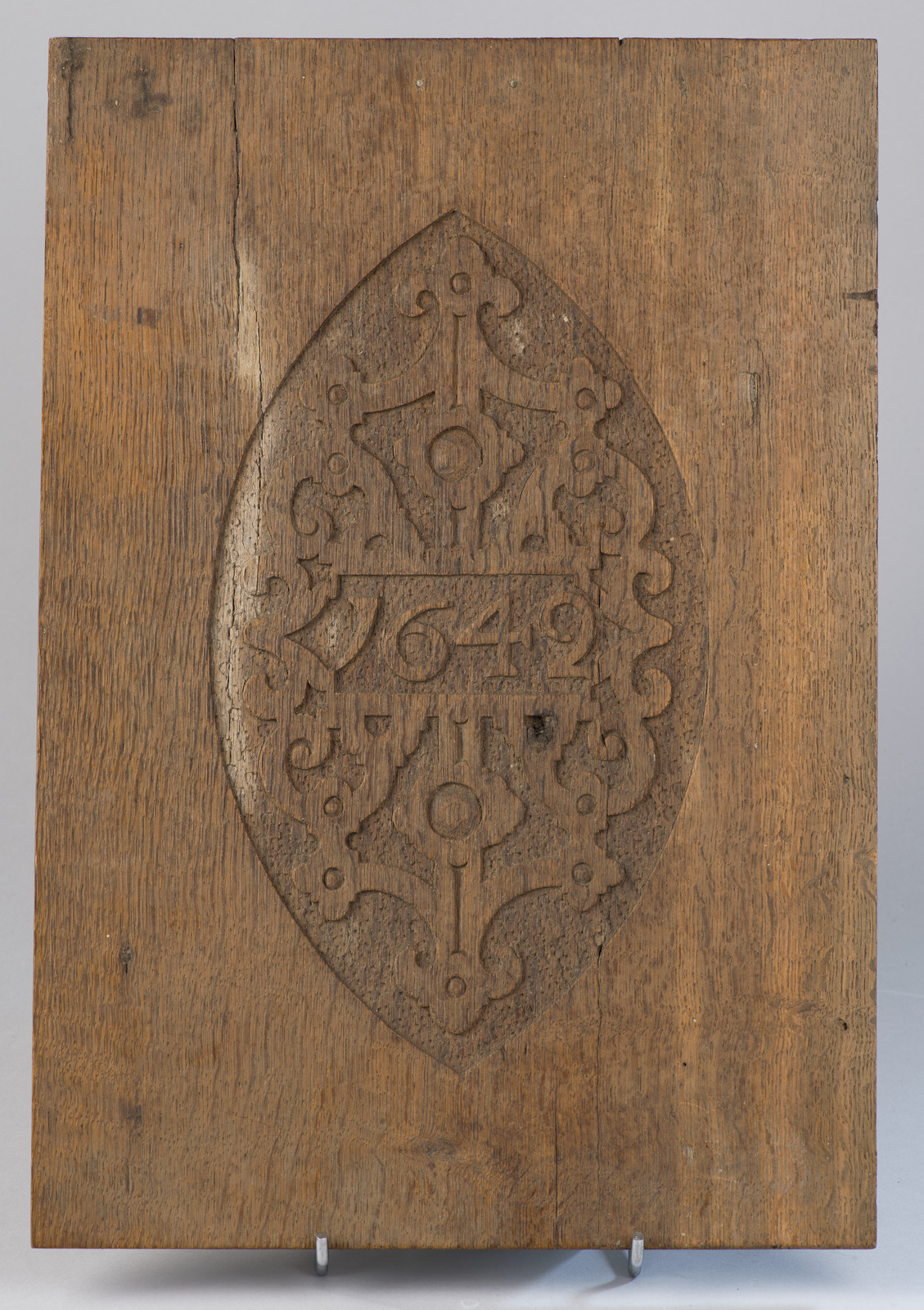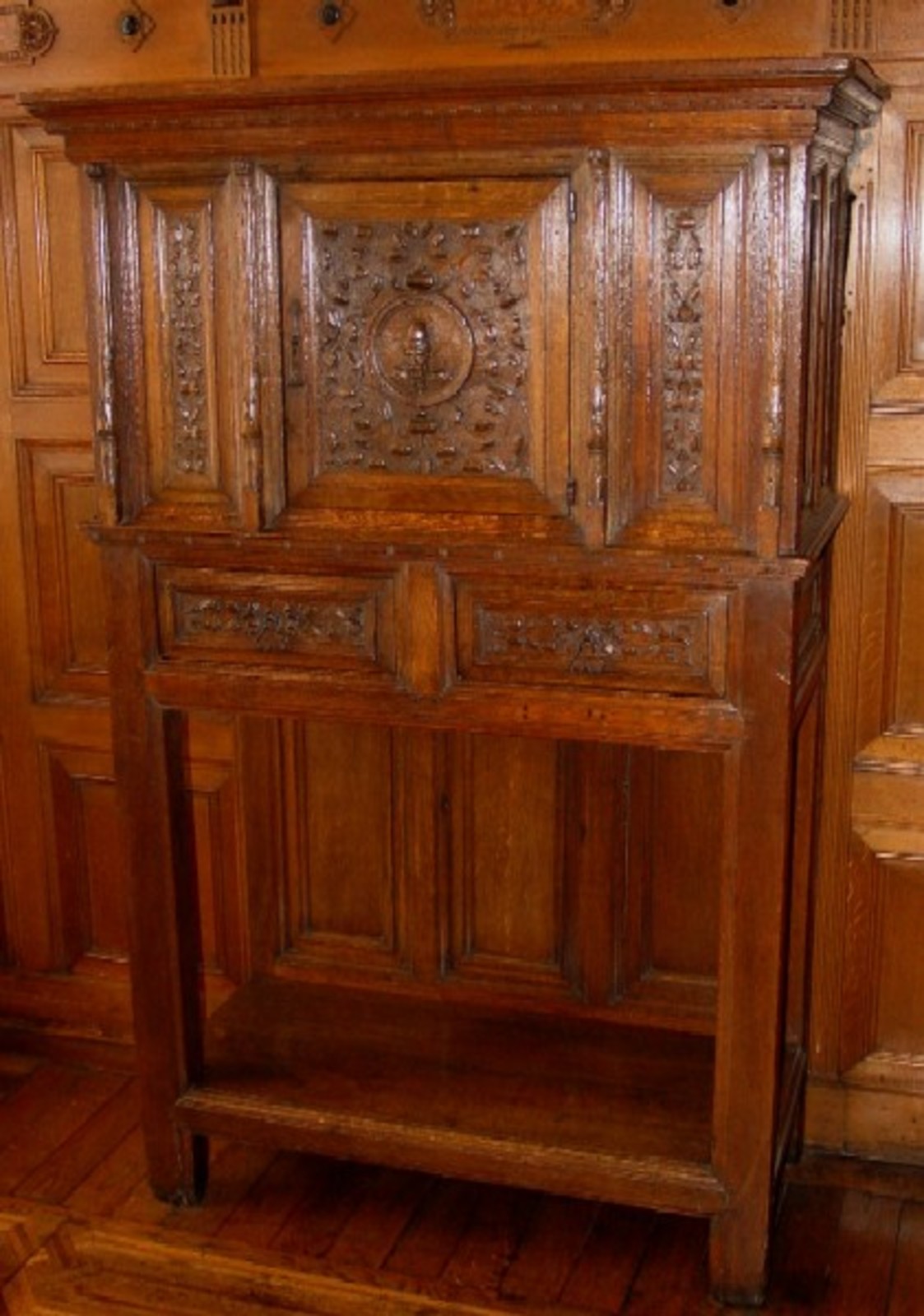 diverse houtsoorten belijmd met padoek- en cederhout, versierd met beschilderde wit marmeren plaquettes (1)