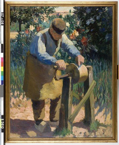 Oude man met slijpsteen