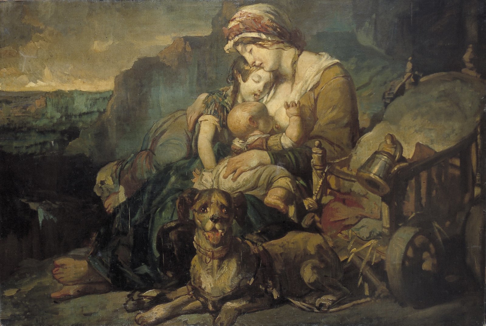 Moeder met twee kinderen en een hond