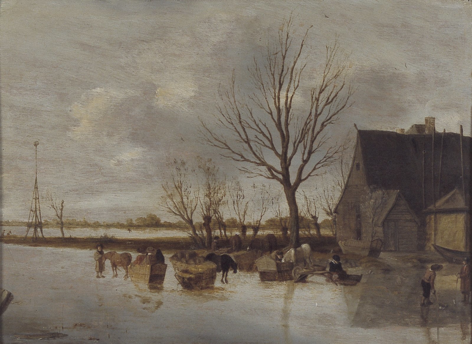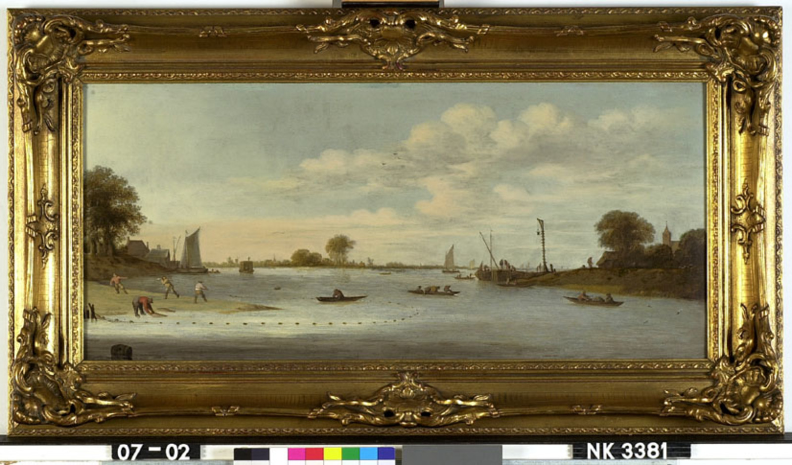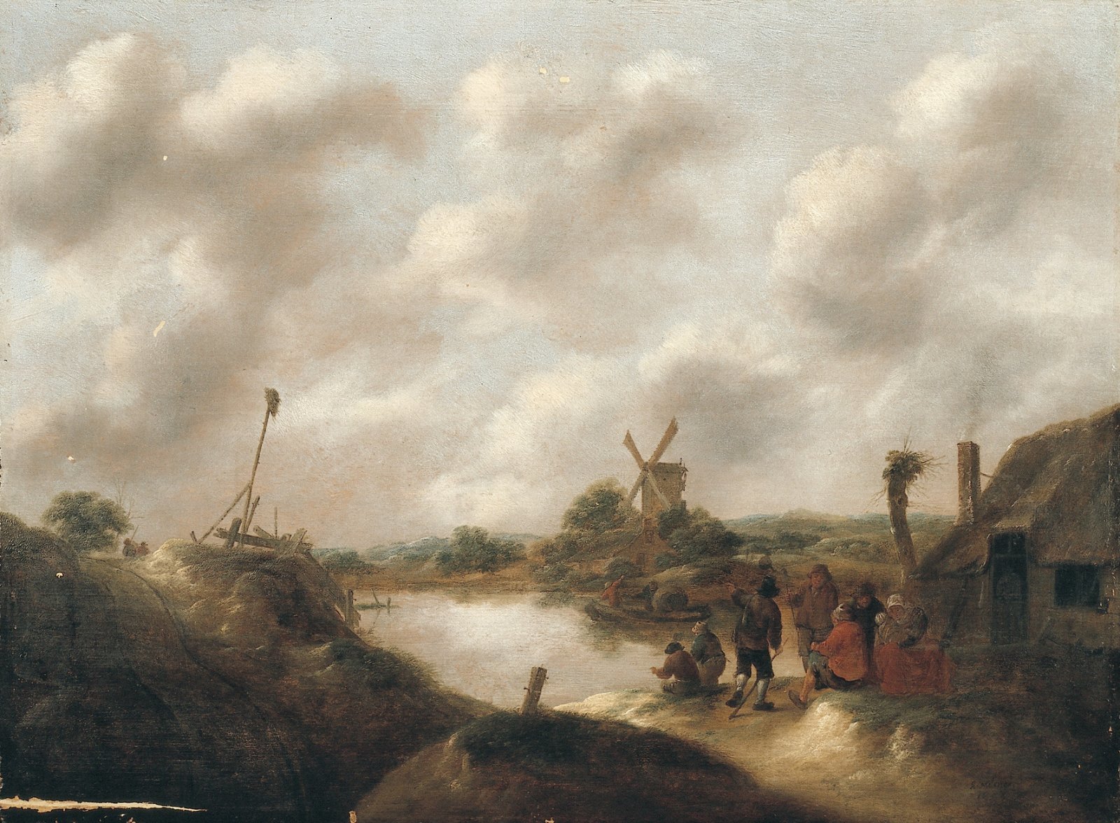 Landschap met boeren aan een rivieroever