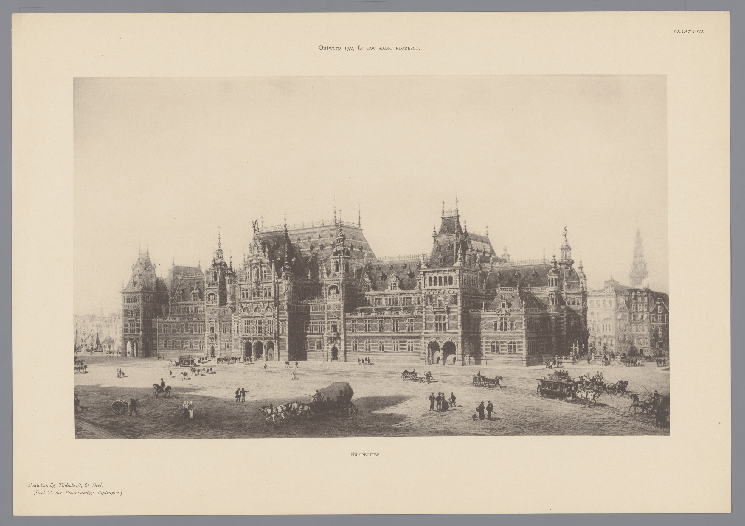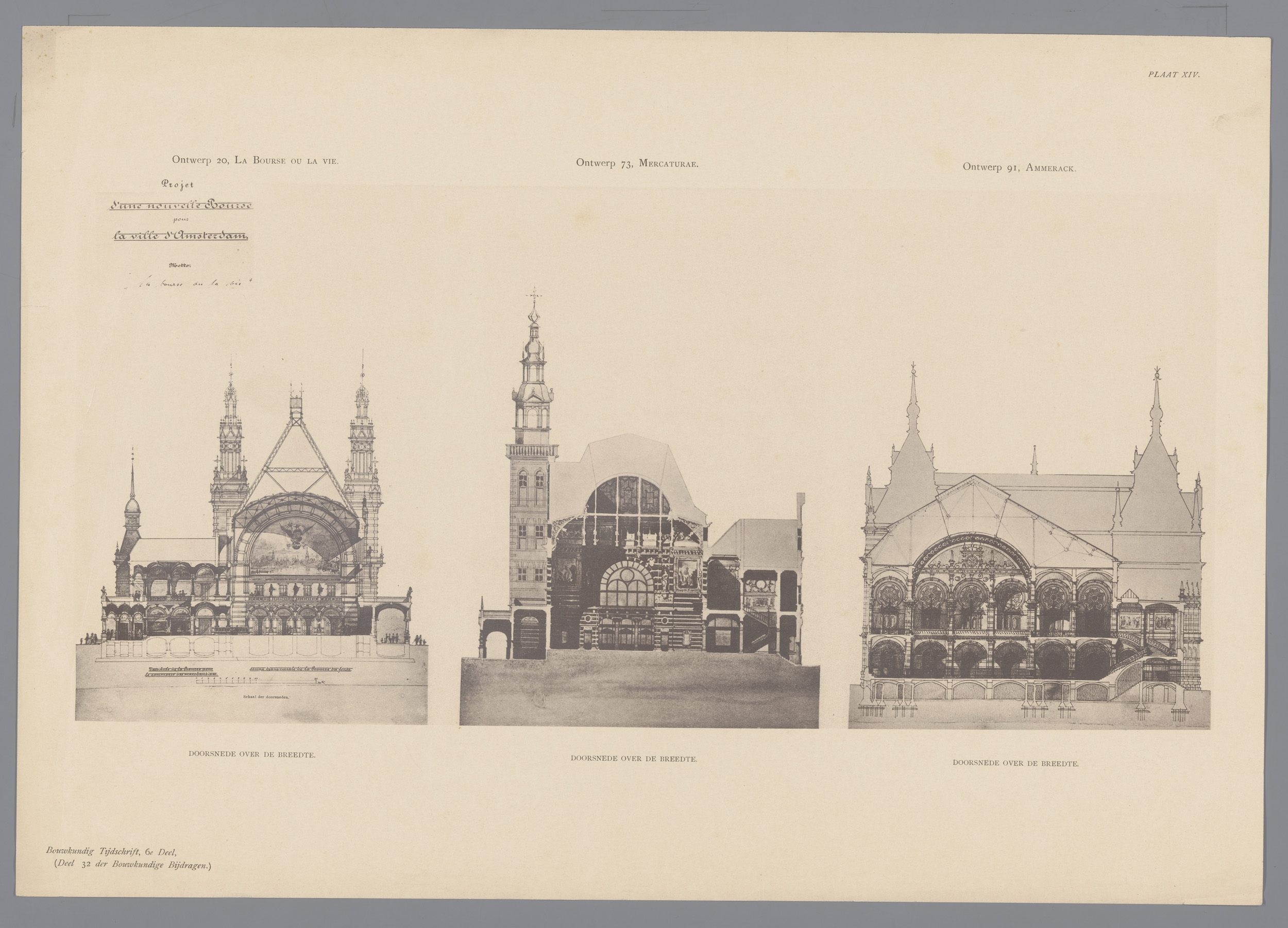Ontwerp voor een nieuw beursgebouw in Amsterdam: doo...