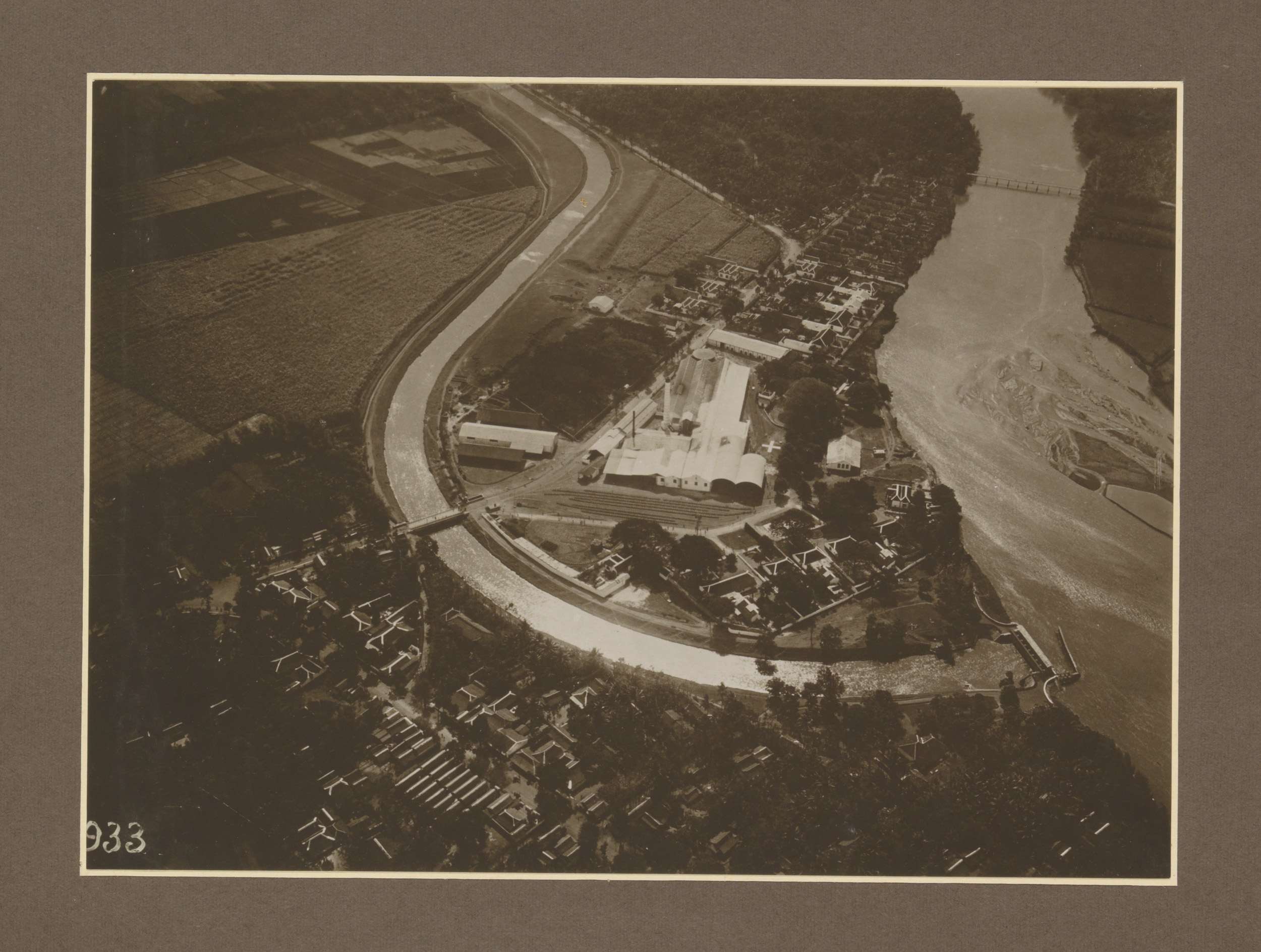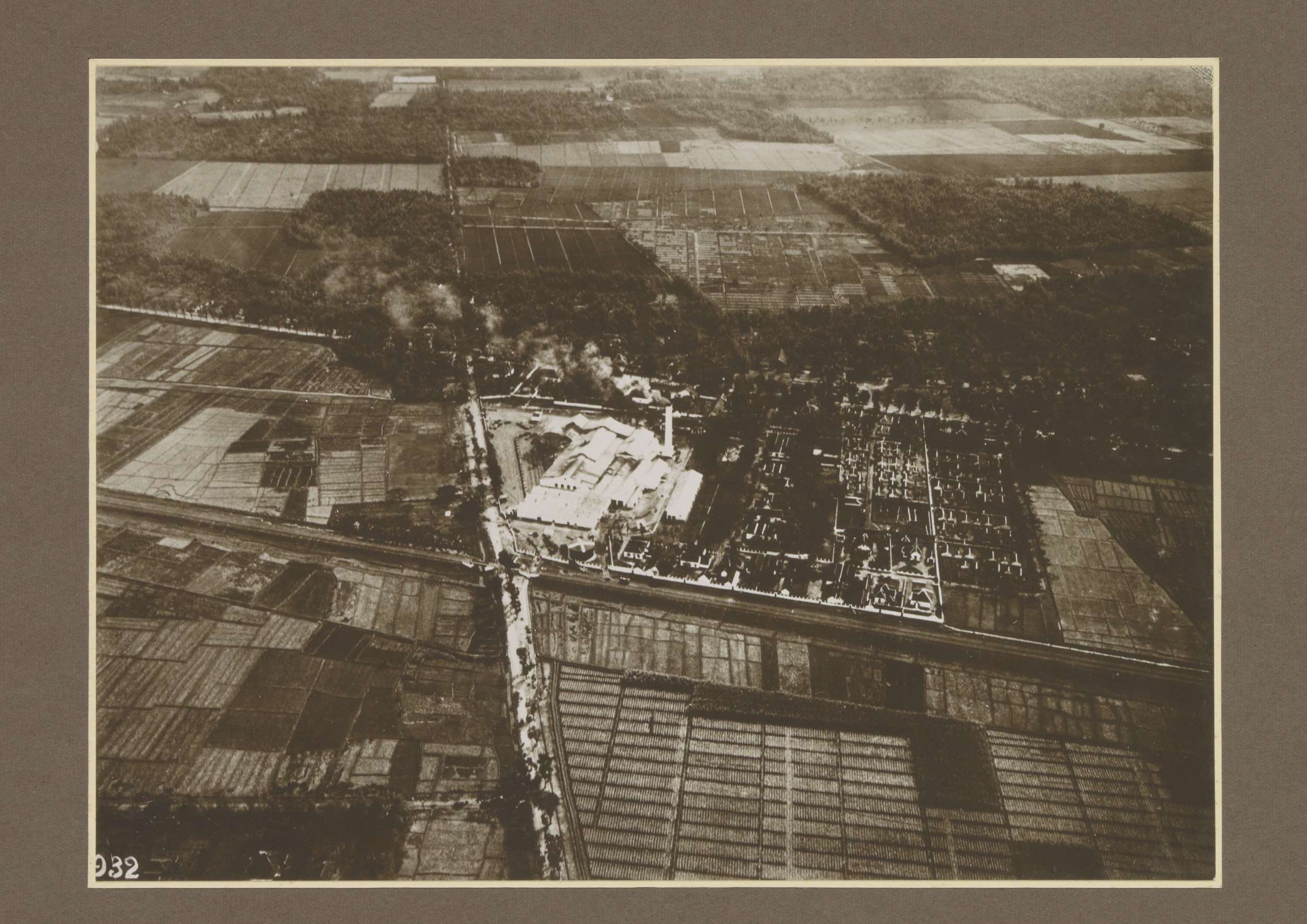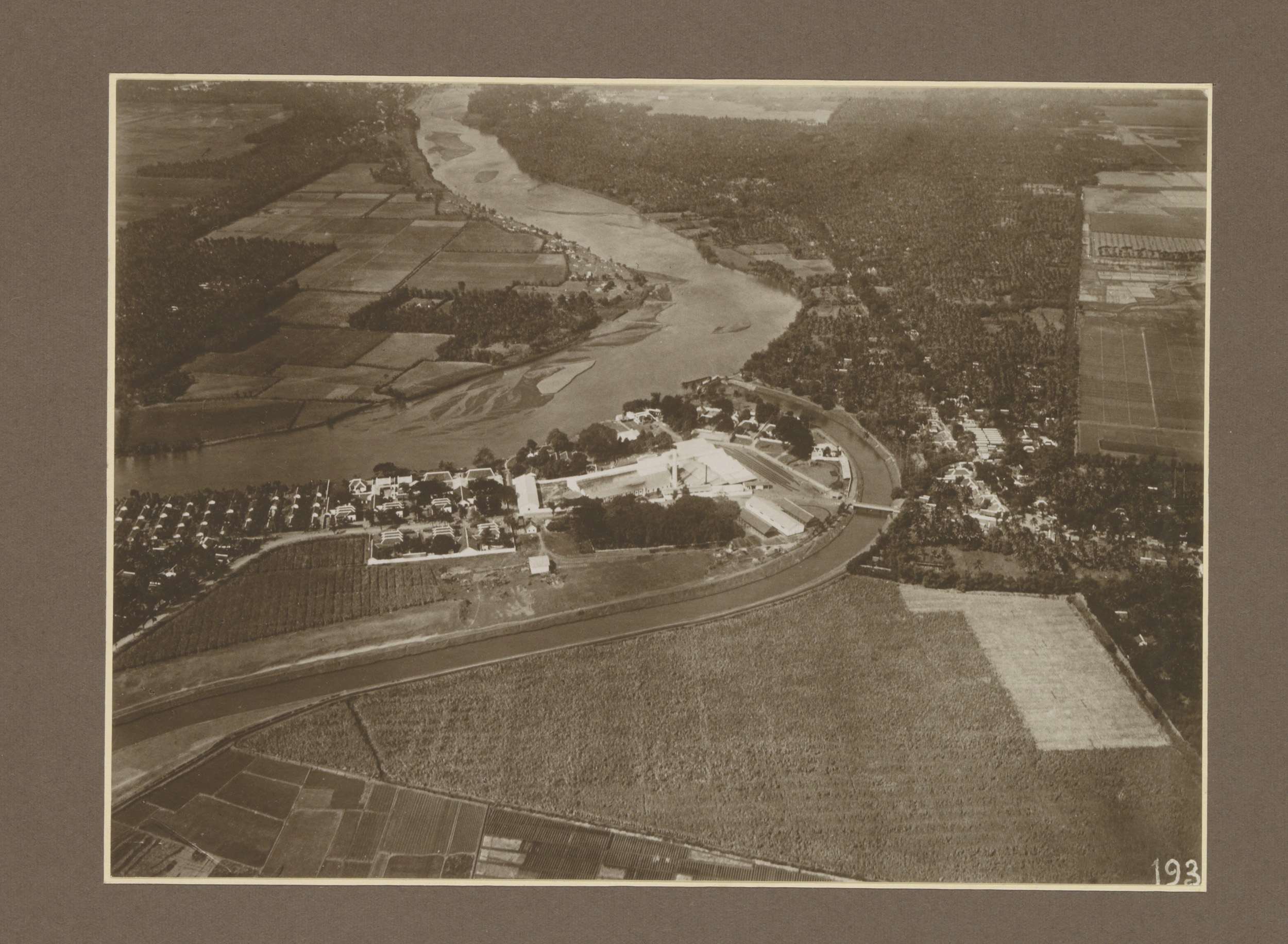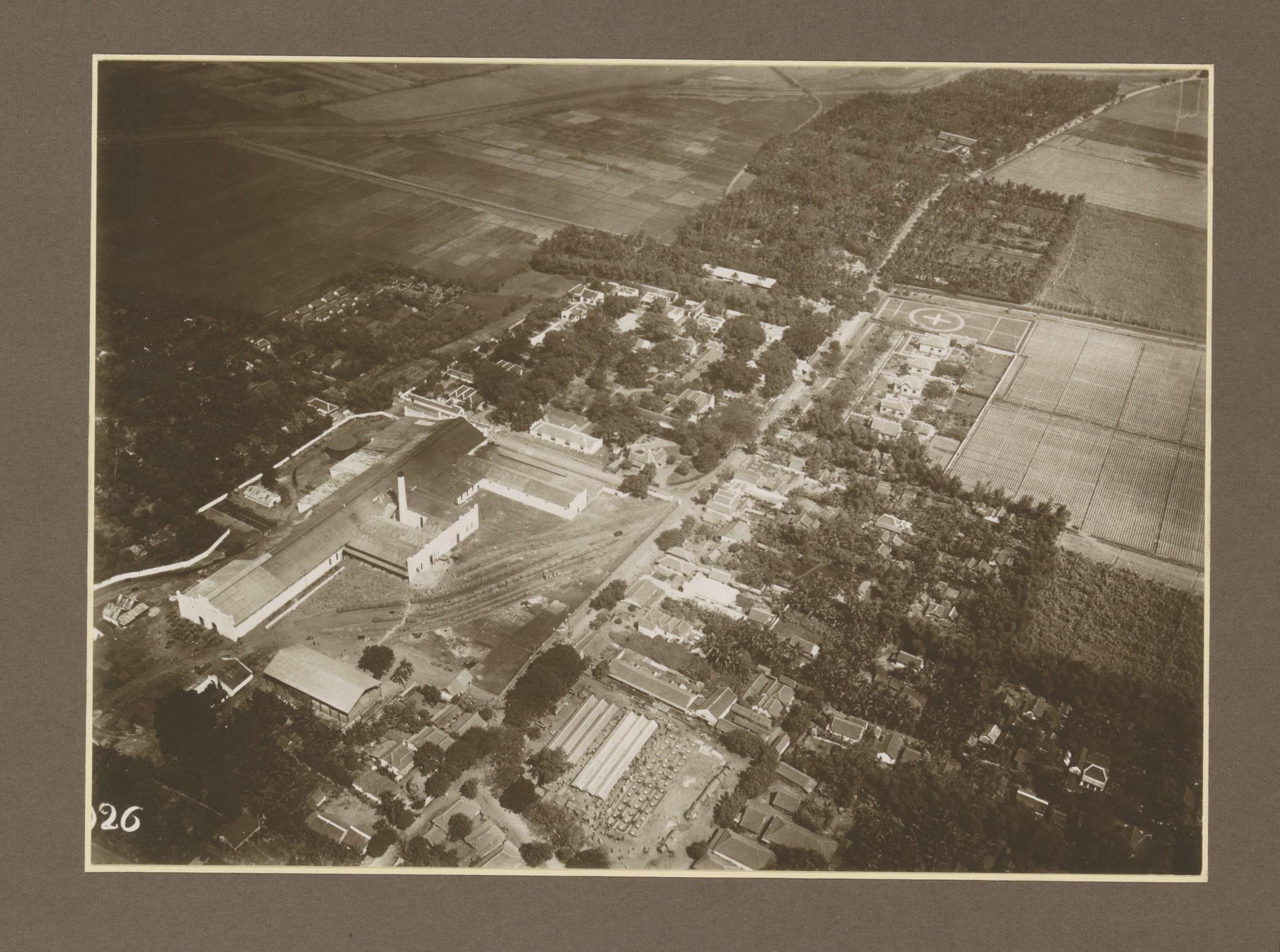 Luchtaanzicht van suikerfabriek Ngandjoek op Java