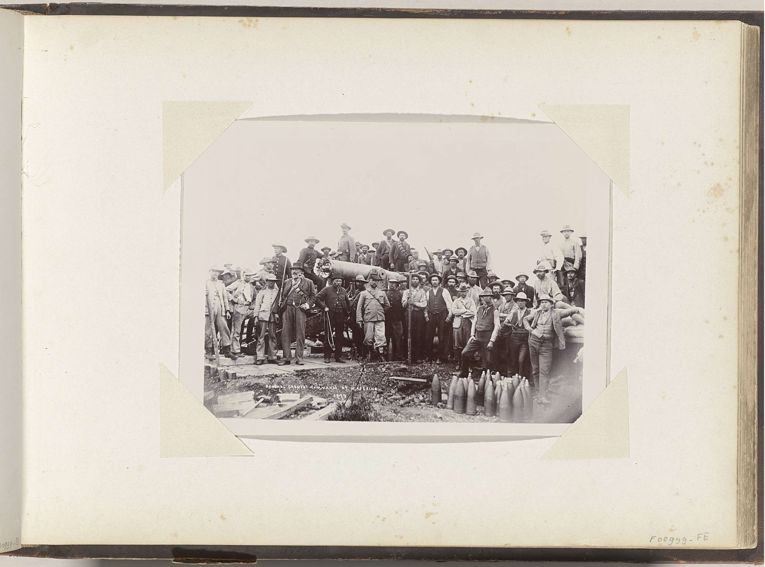 Mannen bij veldgeschut tijdens de belegering van Maf...