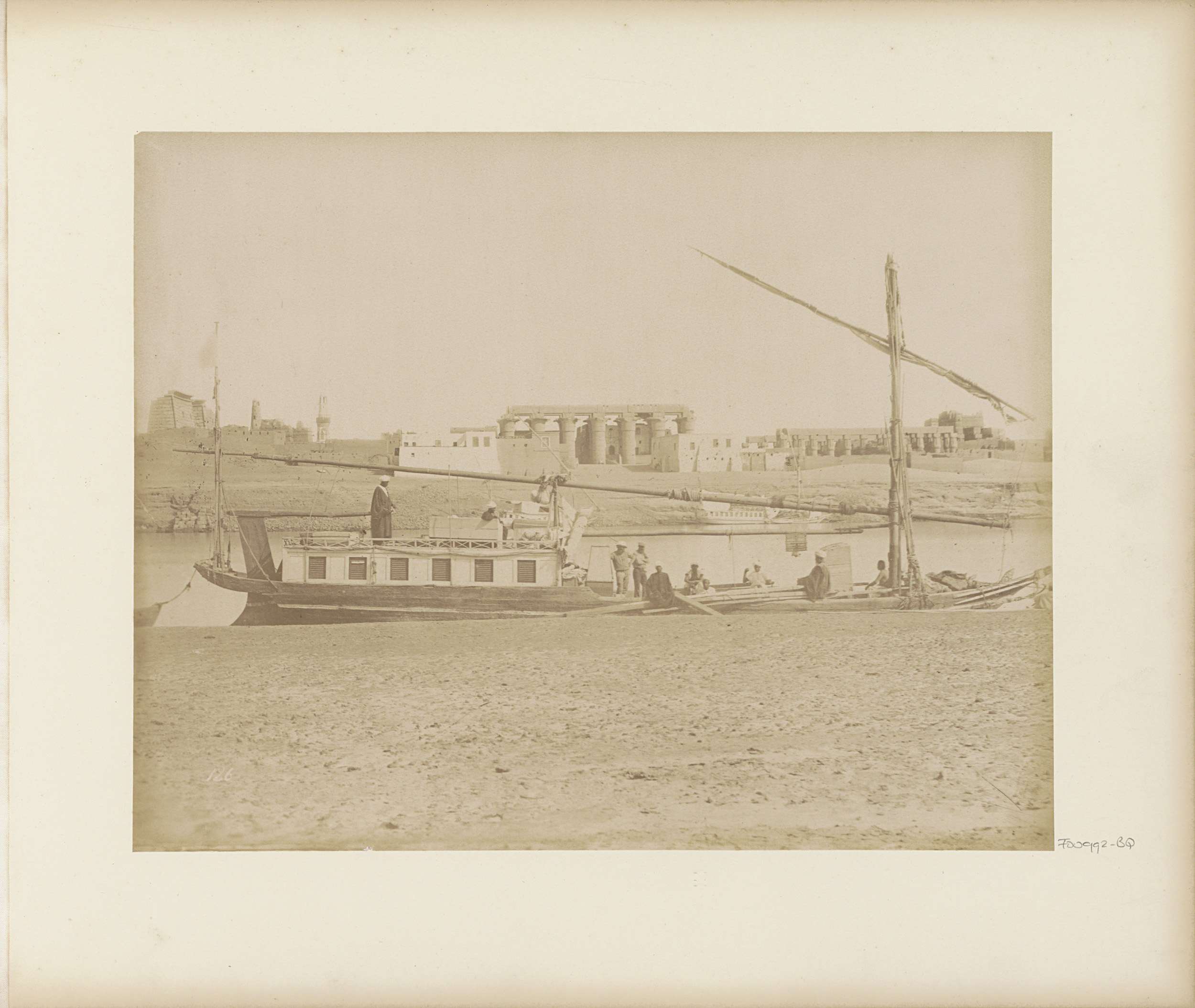 Zeilboot (dahabie) op de Nijl met op de achtergrond ...