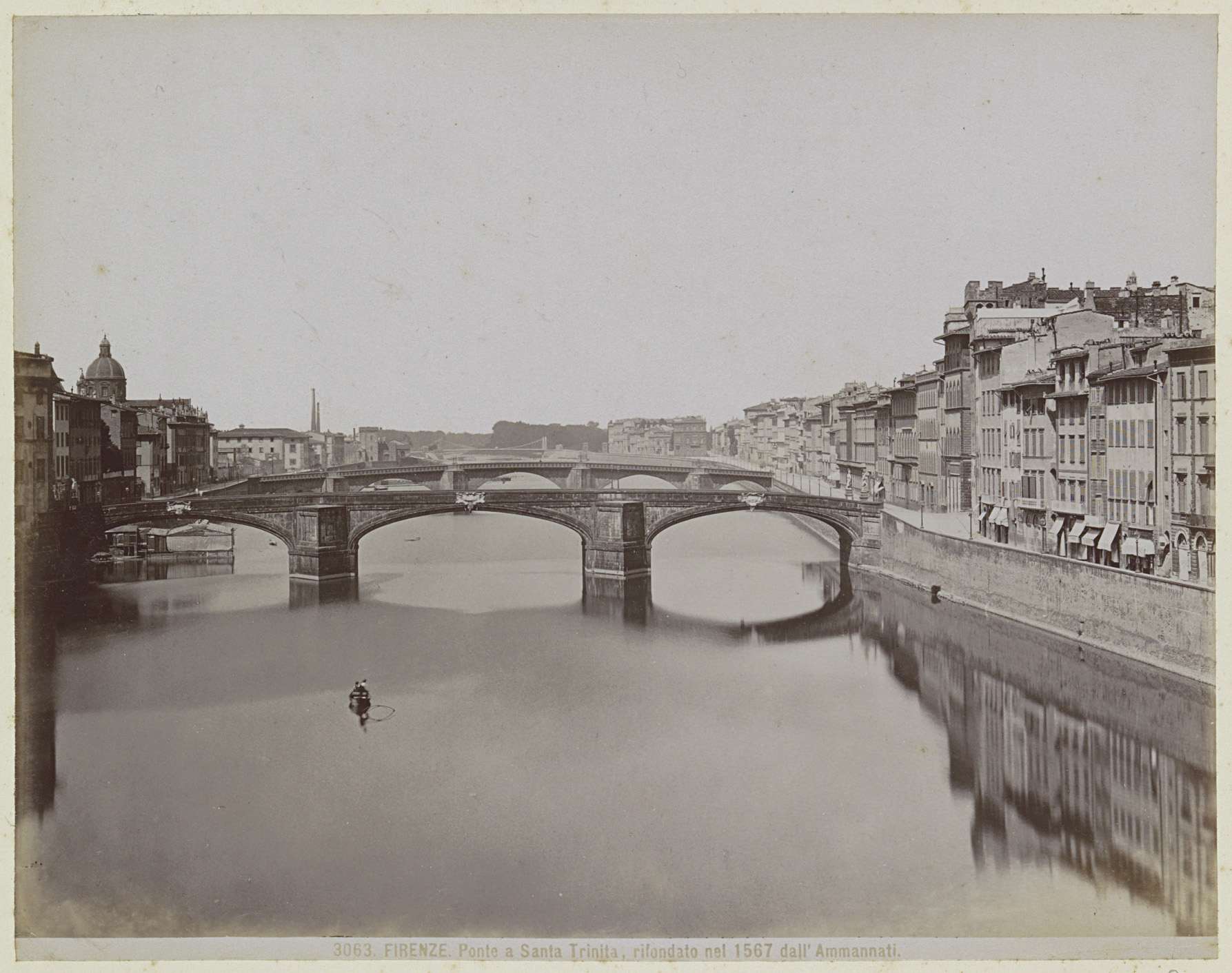 Gezicht op de Ponte a Santa Trinita, de Arno en aanl...