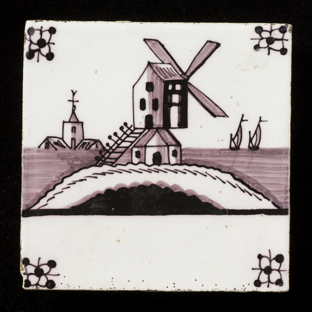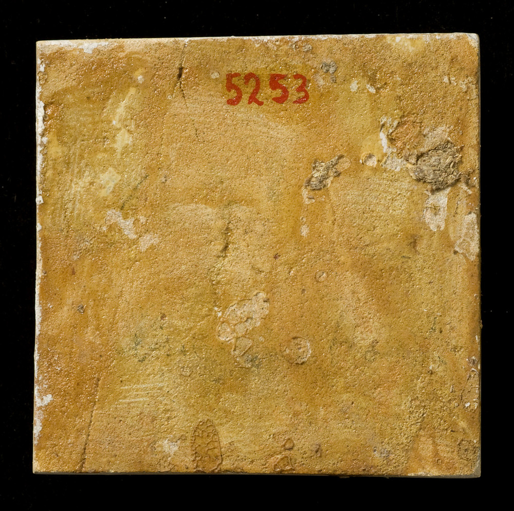 tegel van keramiek met tinglazuur, voorstellende: De...