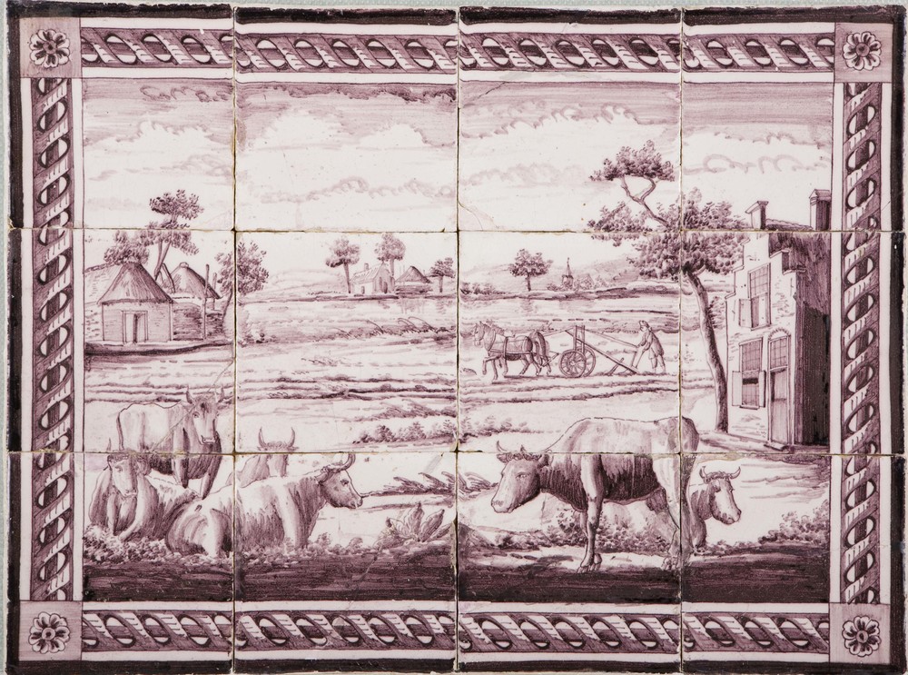 Tegelveld van keramiek, tinglazuur, voorstellende he...