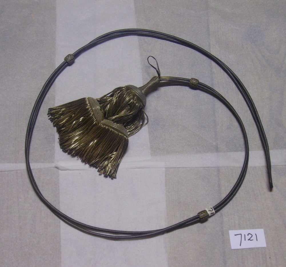 tres met zijden koord, twee schuifjes en 3 zilveren ...