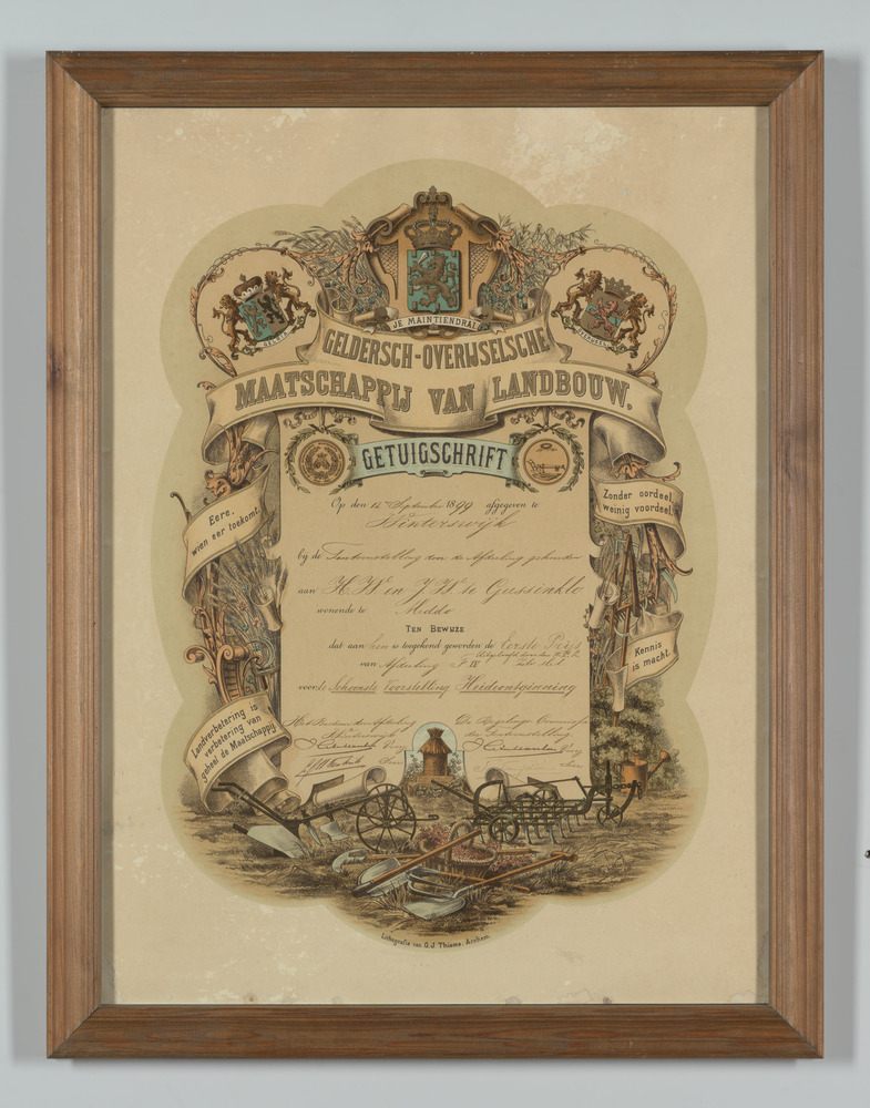 Getuigschrift van de Geldersch Overijselsche Maatsch...