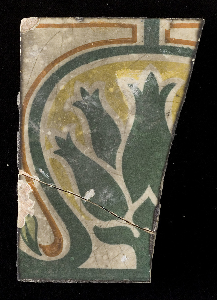 Tegel in tinglazuur, met voorstelling: Ornament, ver...
