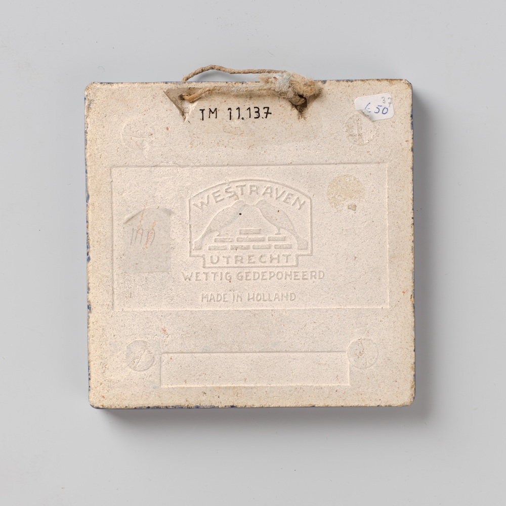 tegel van keramiek met tinglazuur, voorstellende: ru...