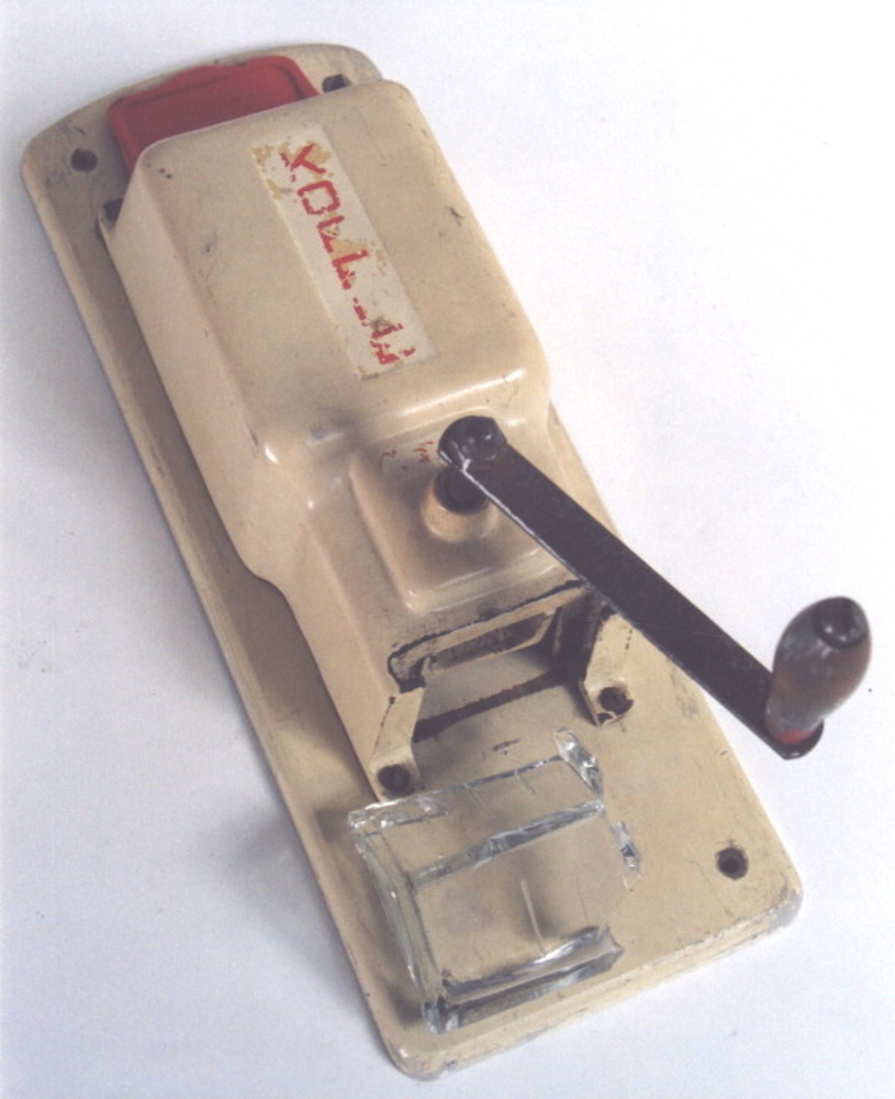 wandkoffiemolen. Rechthoekige achterplank in gietijz...