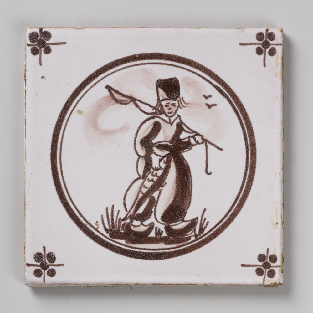 tegel van aardewerk met tinglazuur, voorstellende: v...