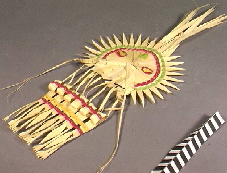 Tempelversiering van gekleurd palmblad