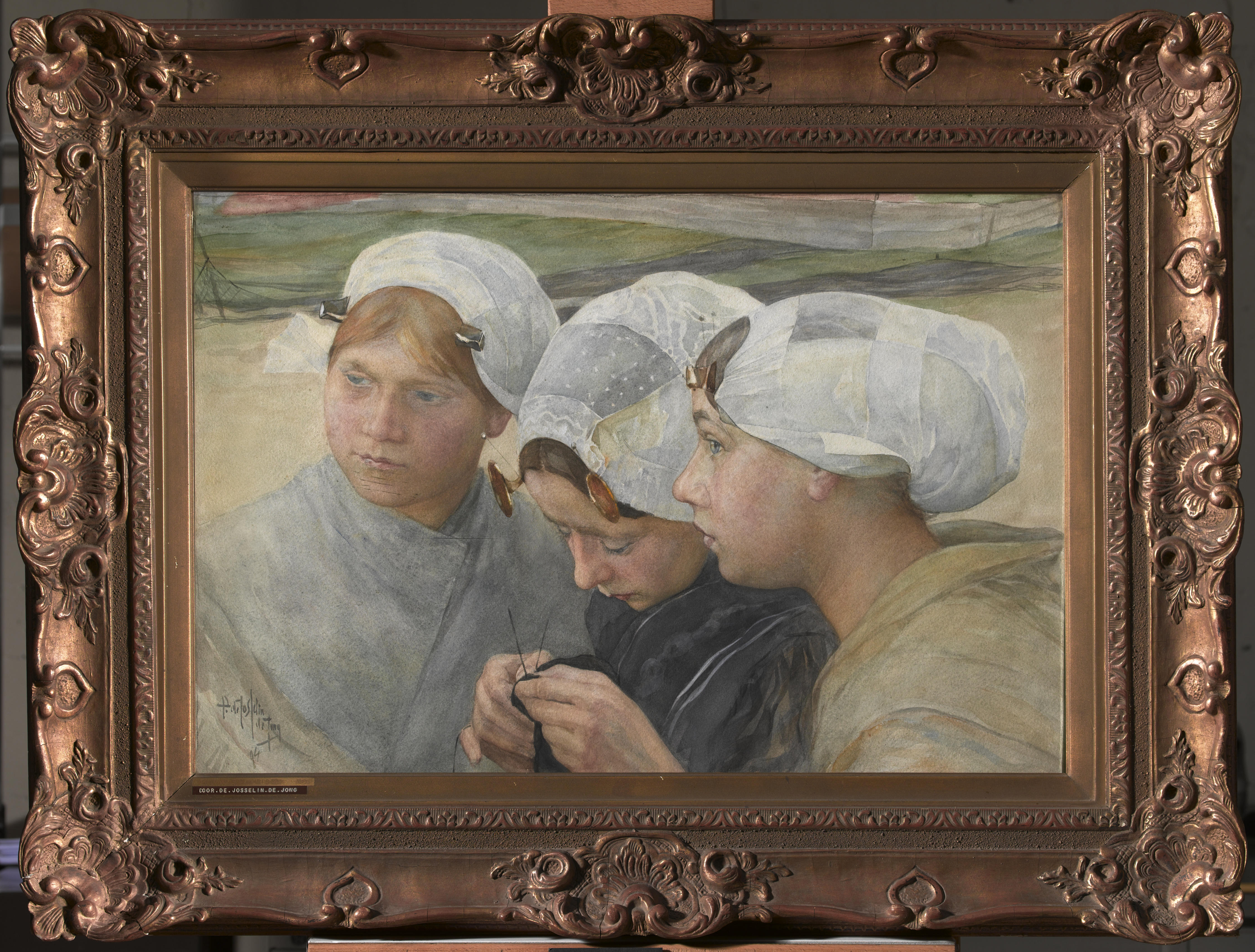 Drie Scheveningse meisjes in streekdracht, 1894