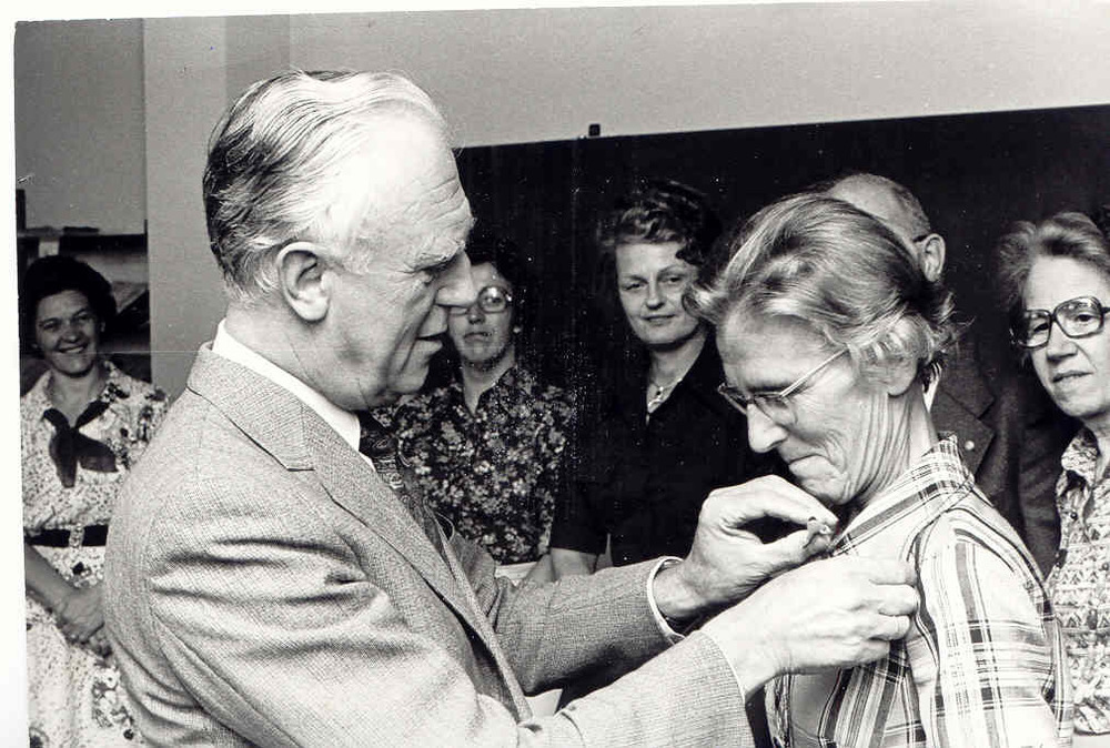 Roost, Joop - Uitreiking onderscheiding door Burg. Slot