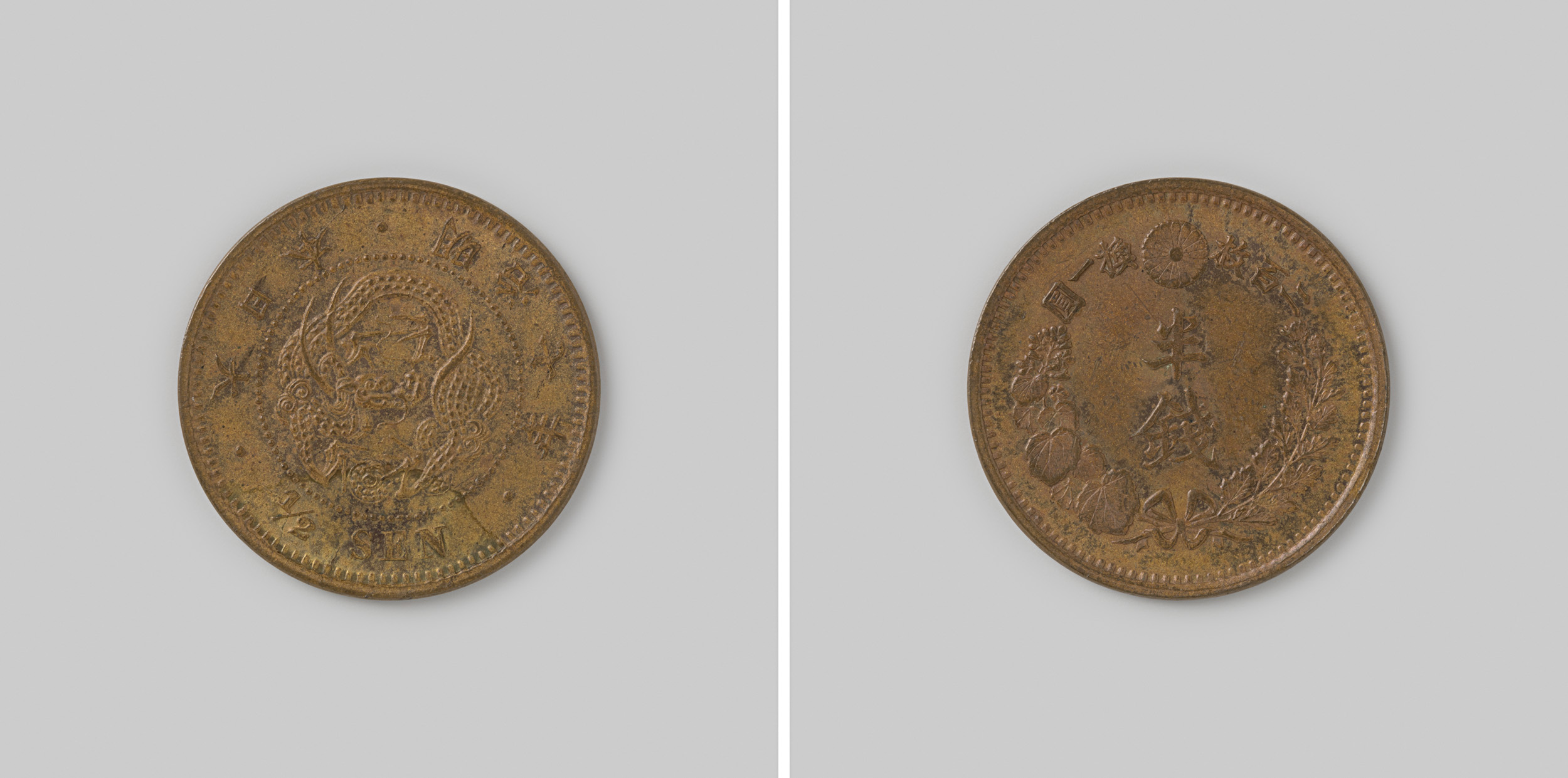 ½ sen van het keizerrijk Japan, uit het Meiji tijdpe...
