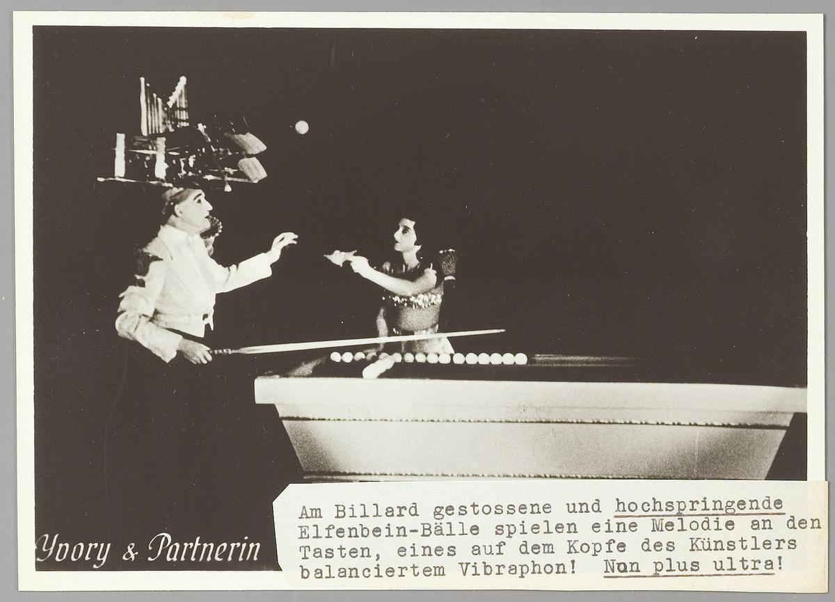 Yvory & Partnerin. Am Billard gestossene und hochspr...