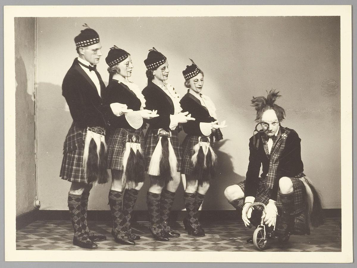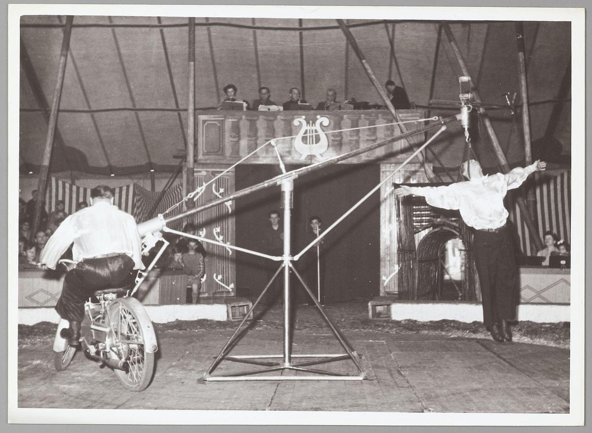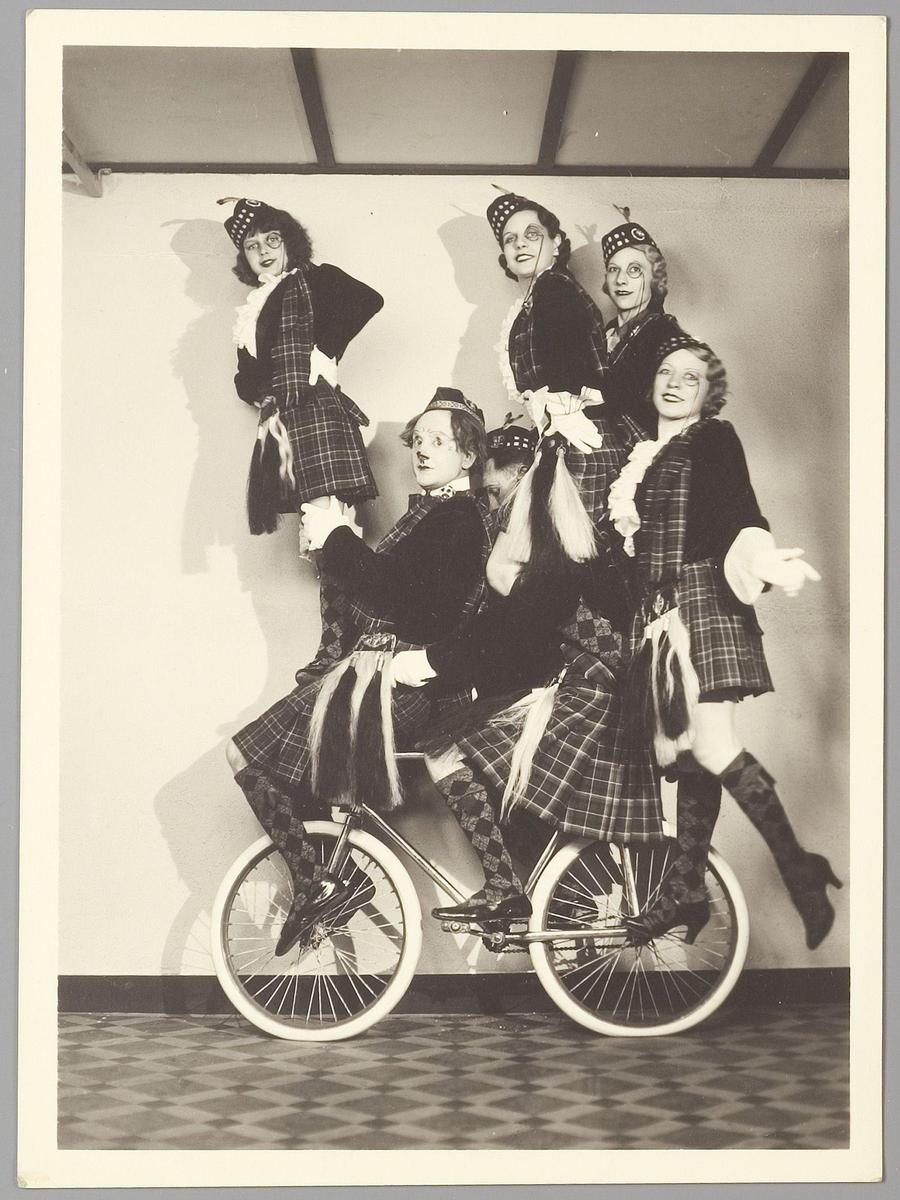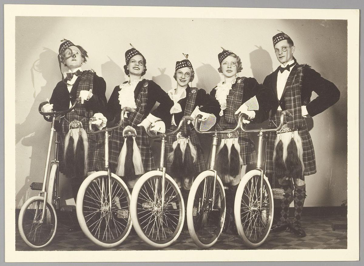Aldemira Zacchini - fietsacrobaten in Schotse kleder...