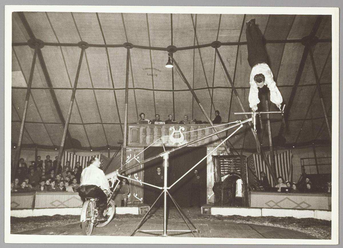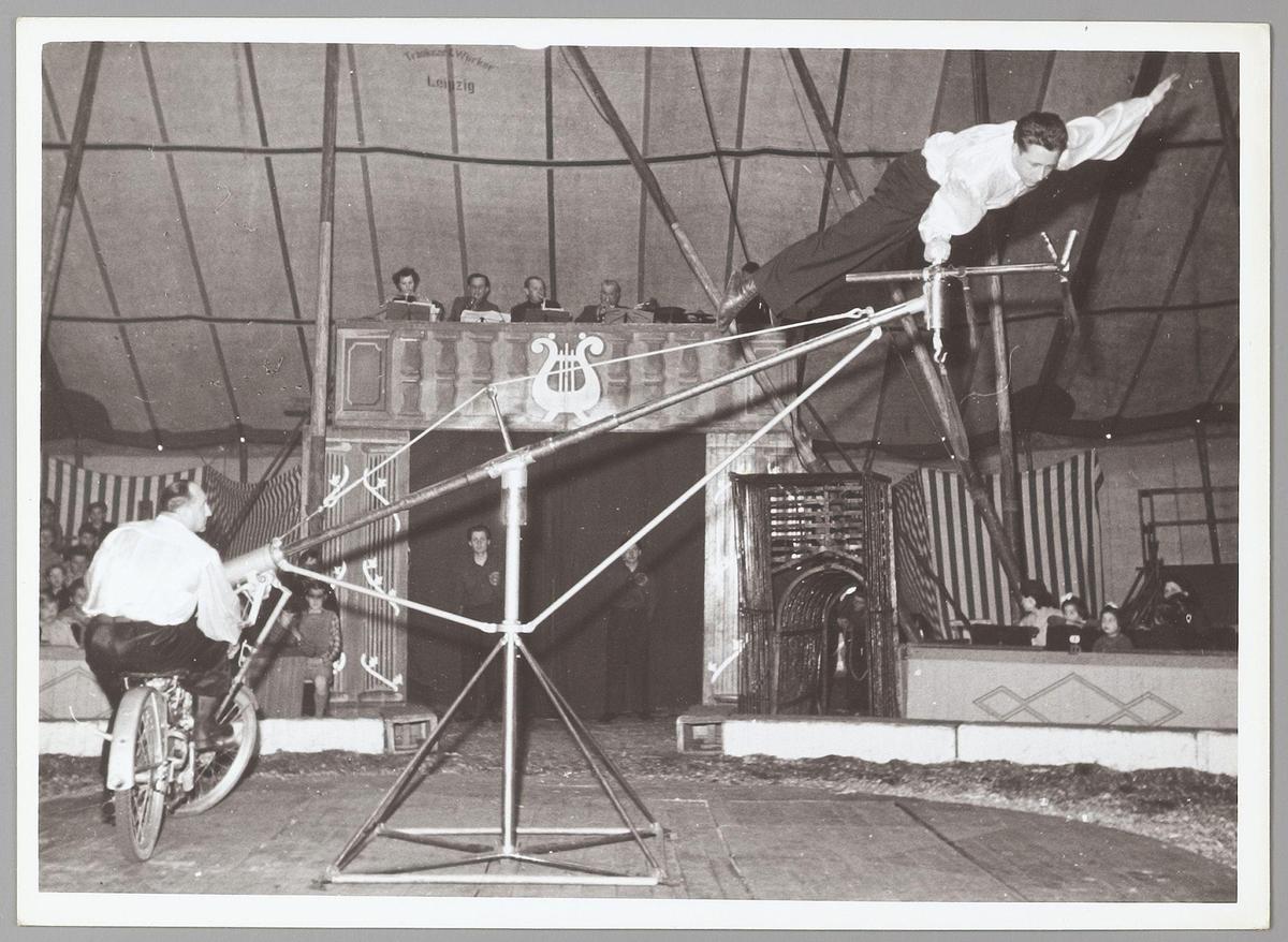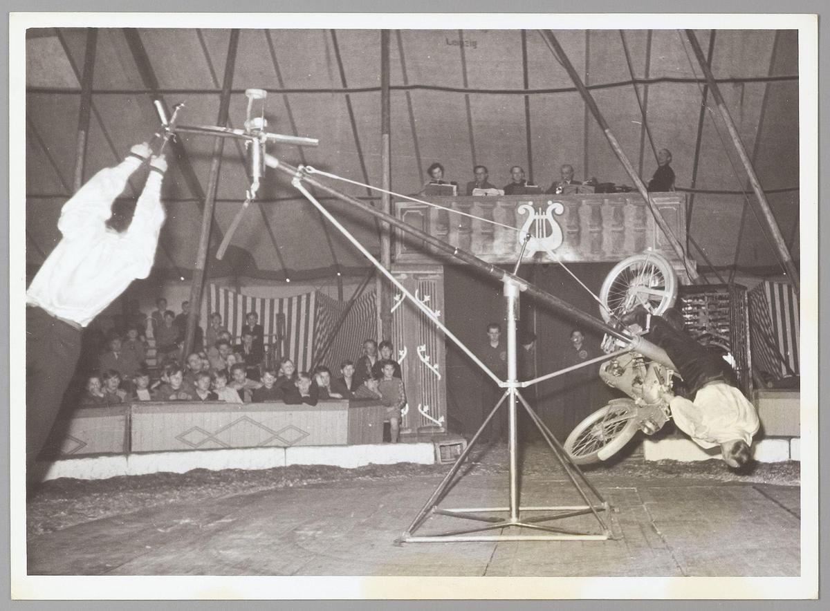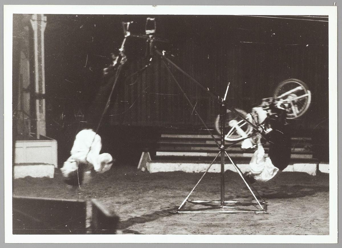 Aldemira Zacchini - fietsacrobaten in Schotse kleder...