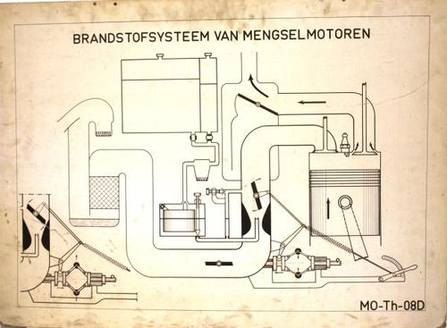 Schoolplaat van karton voorstellende de brandstoftoe...