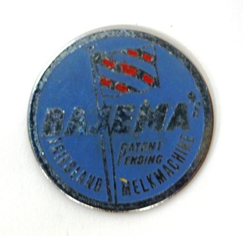 Merkteken van metaal van Bajema's melkmachinefabriek